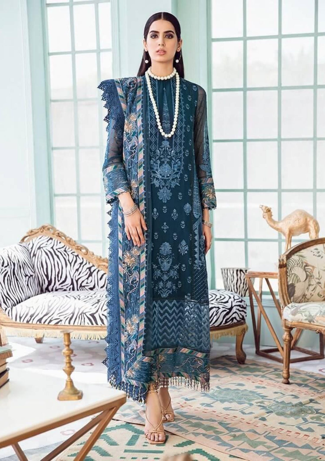 Outfit Type: Eastern Style: Long Shirt Color Type: Ferozi Package Includes: 3 Piece Top ,...