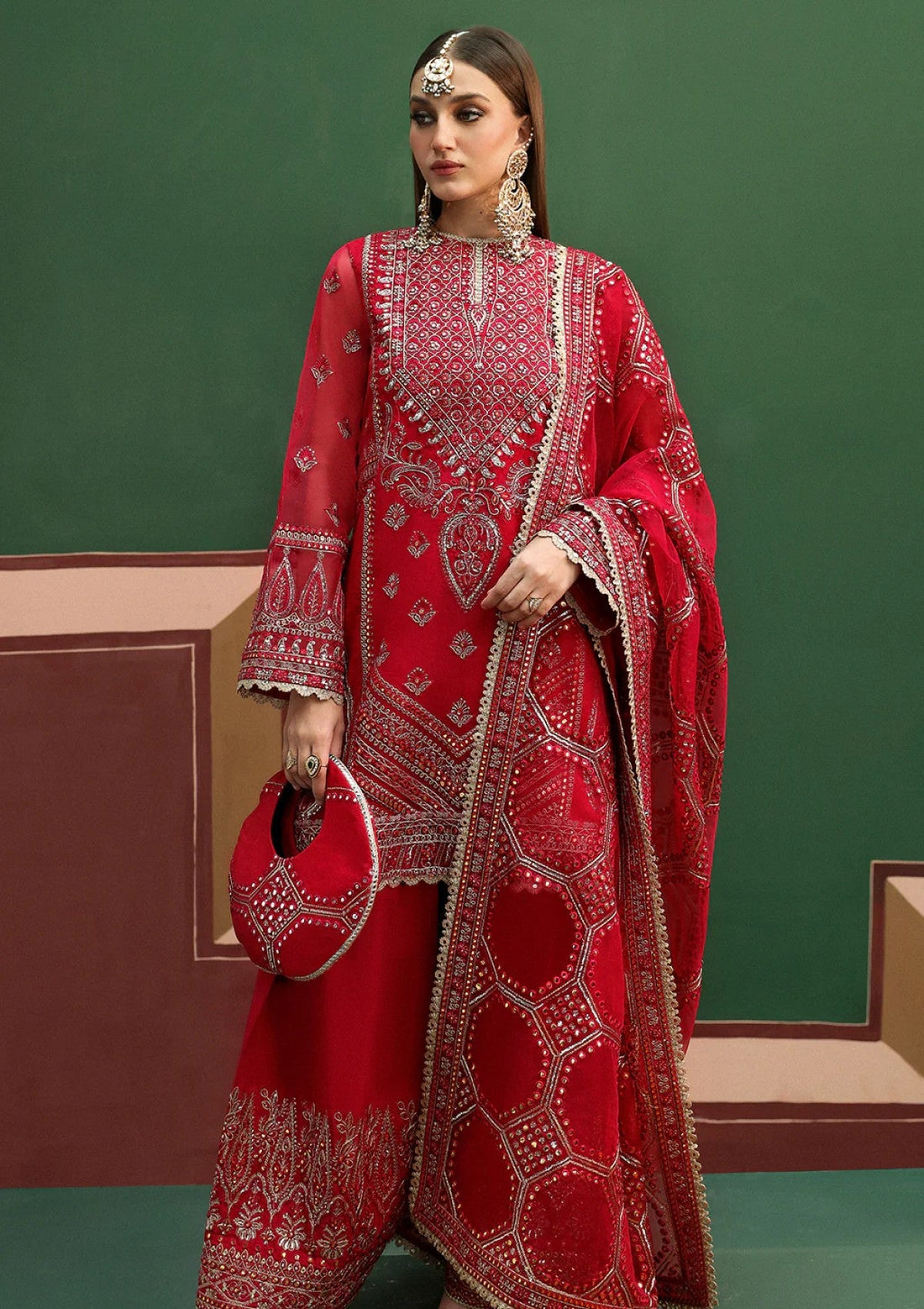 Outfit Type: Eastern Style: Kurta Set Color Type: Red Package Includes: 3 Piece Top ,...