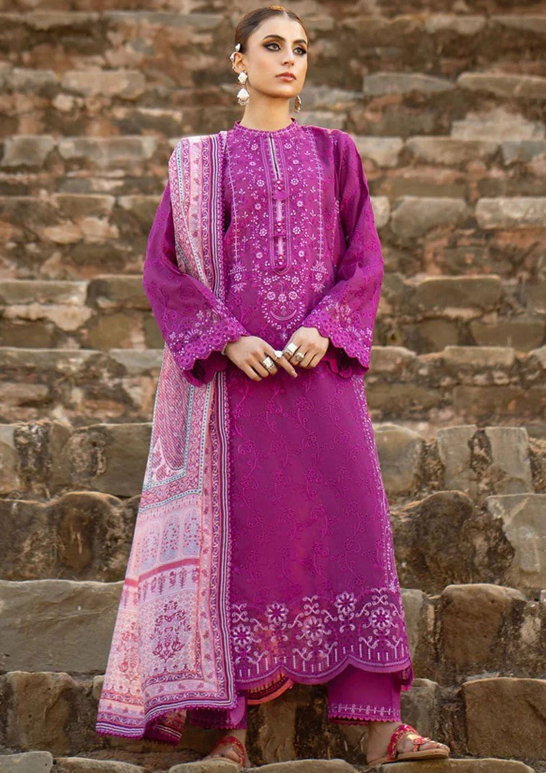 Outfit Type: EasternStyle: Frock Color Type: Pink Package Includes: 3 Piece Top , Bottom &...
