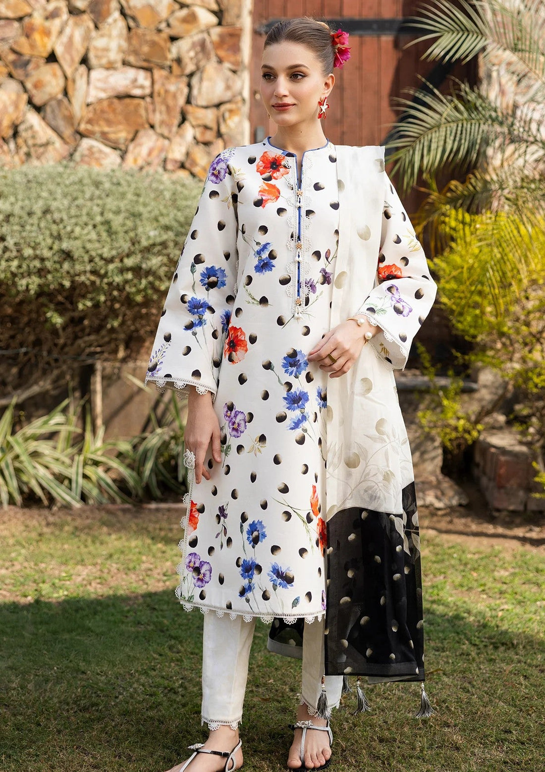 Outfit Type: Eastern Style: Kurta Set Color Type: White & Black Package Includes: 3 Piece...