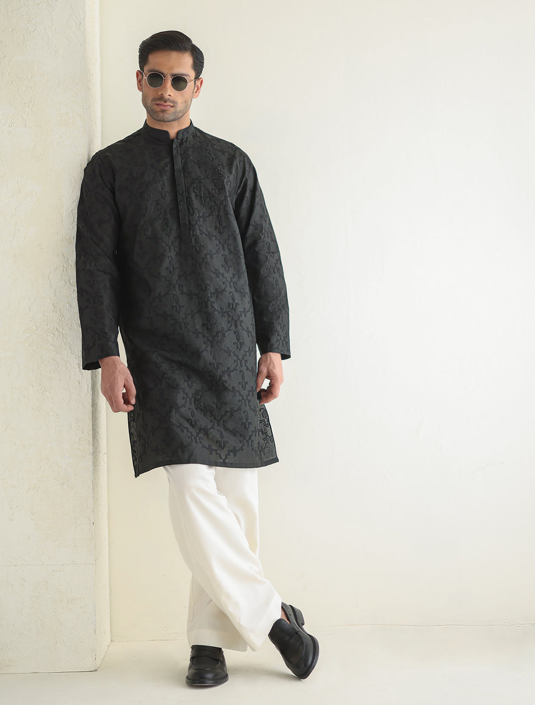 Pakistani Menswear | Ismail Farid - BLACK EMBROIDERED KURTA