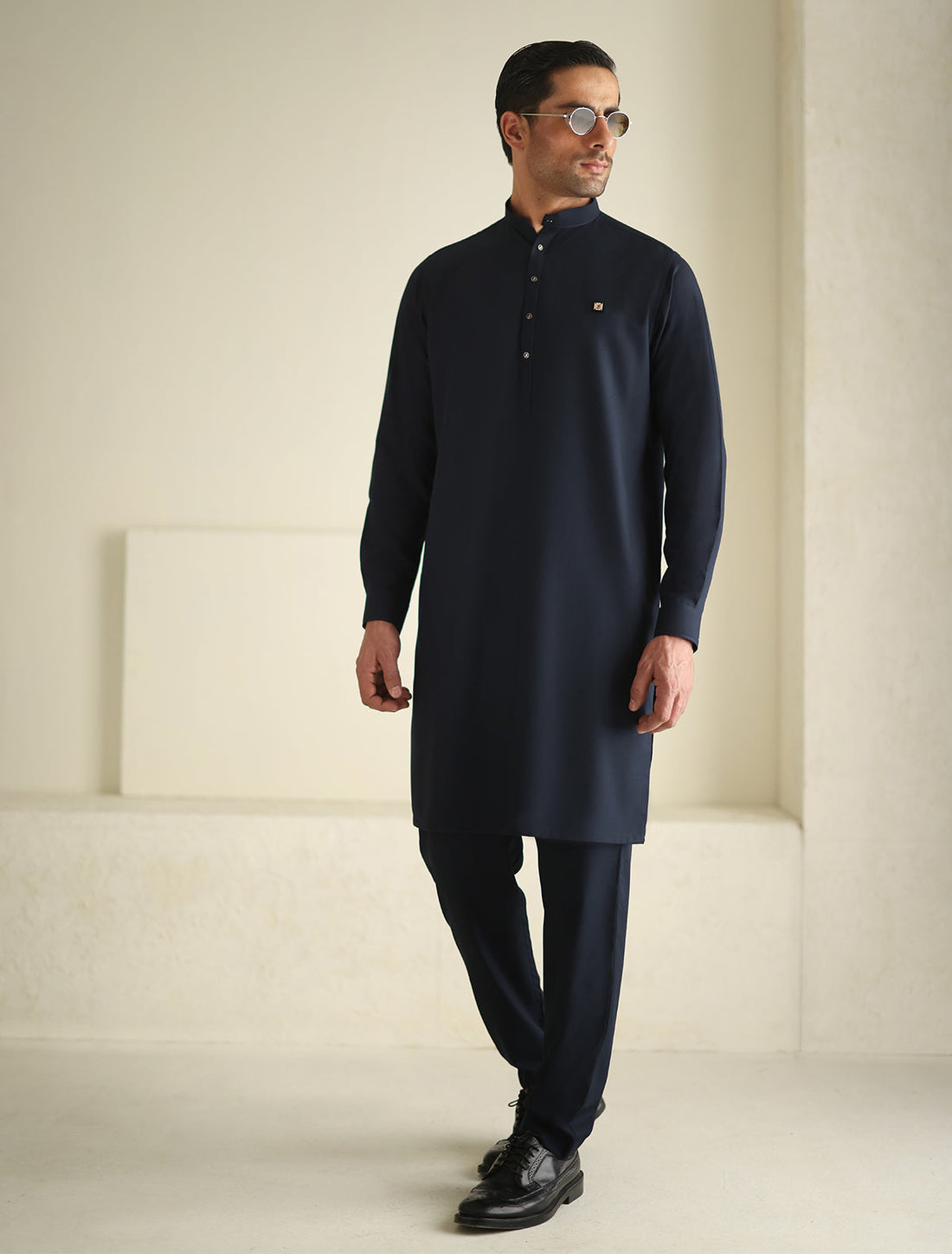 Pakistani Menswear | Ismail Farid - BLACK MANDARIN COLLAR KAMEEZ SHALWAR
