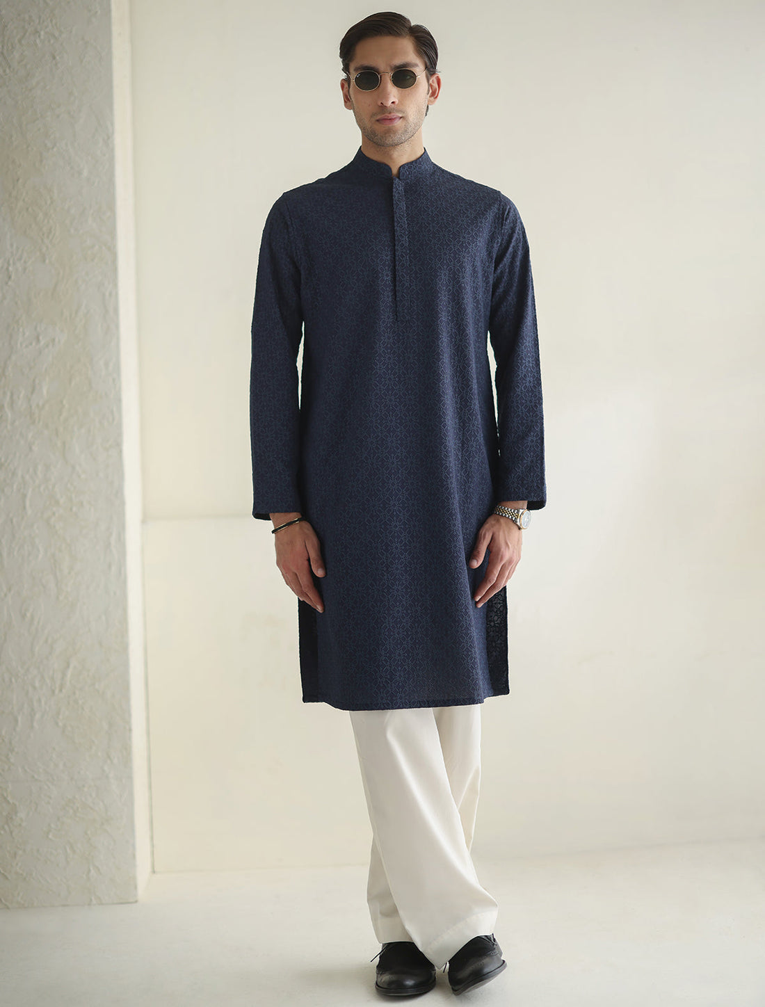 White Kurta Pajama -Mandarin collar-Premium fabric-Classic white buttons-Unique thread details Why Choose Us We deliver...