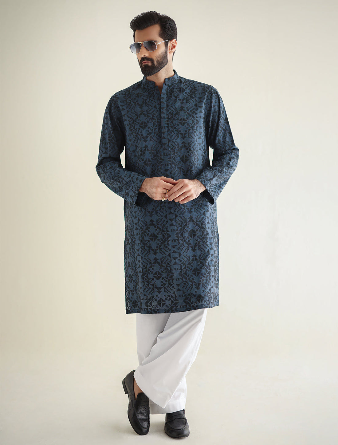 Pakistani Menswear | Ismail Farid - BLUE CLASSIC KURTA PAJAMA