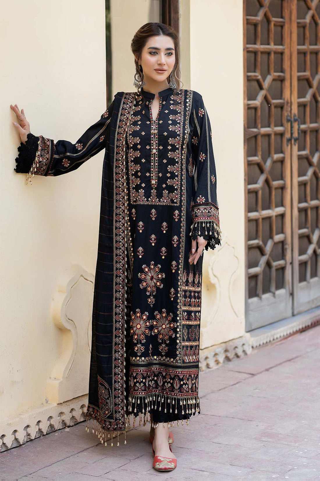 EMB Karandi Front with Embellishment 1 METERPlain Karandi Back 1 METEREMB Karandi Sleeves 26 INCHSEMB...