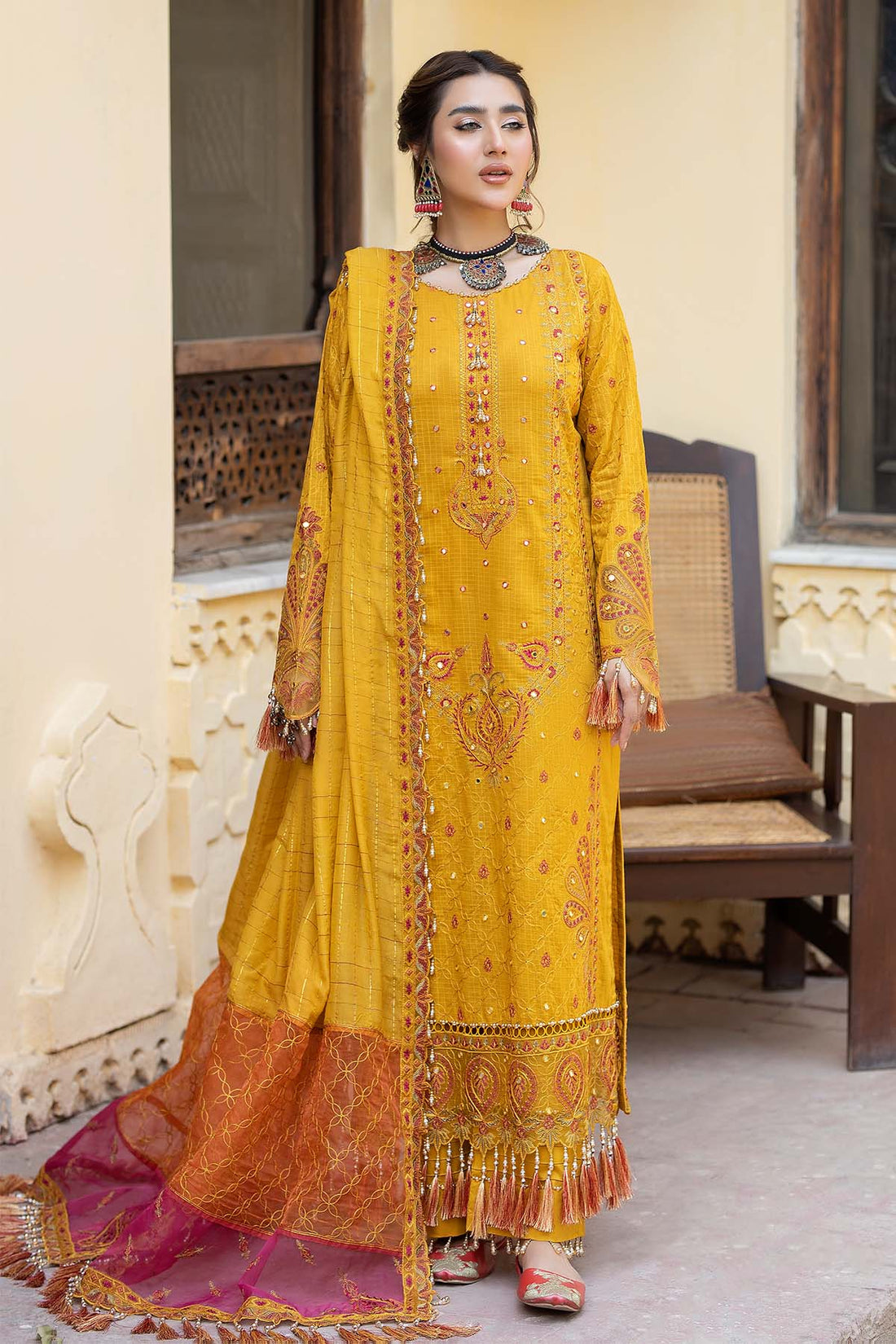 Shirt : Luxury Lawn Shirt with Handmade Mirror WorkTrouser : CottonDupatta : Stitched Pure Bamber...