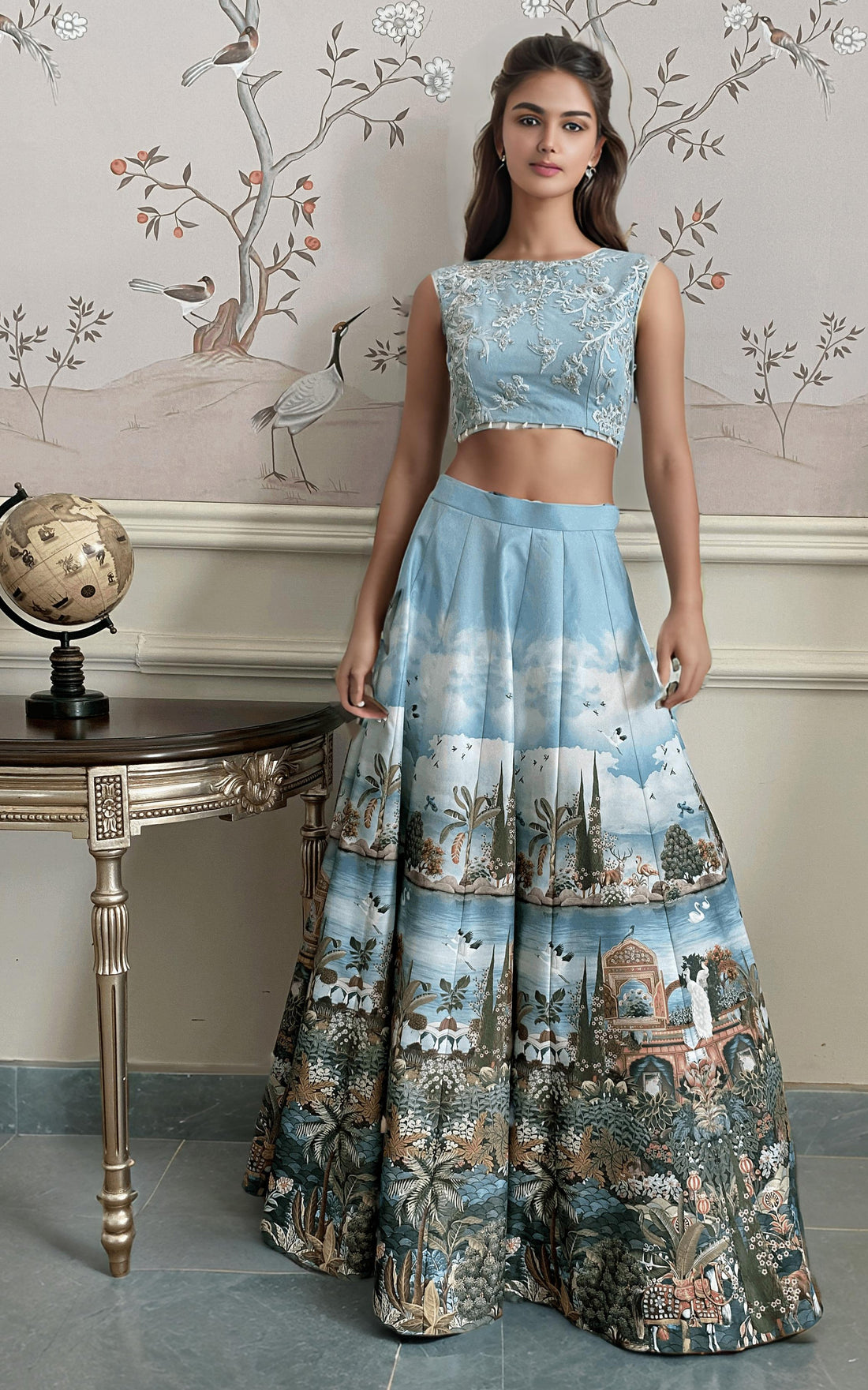 The empyrean net embroidered shirt in a hint of blue shade. Delicately embellished with intricate...