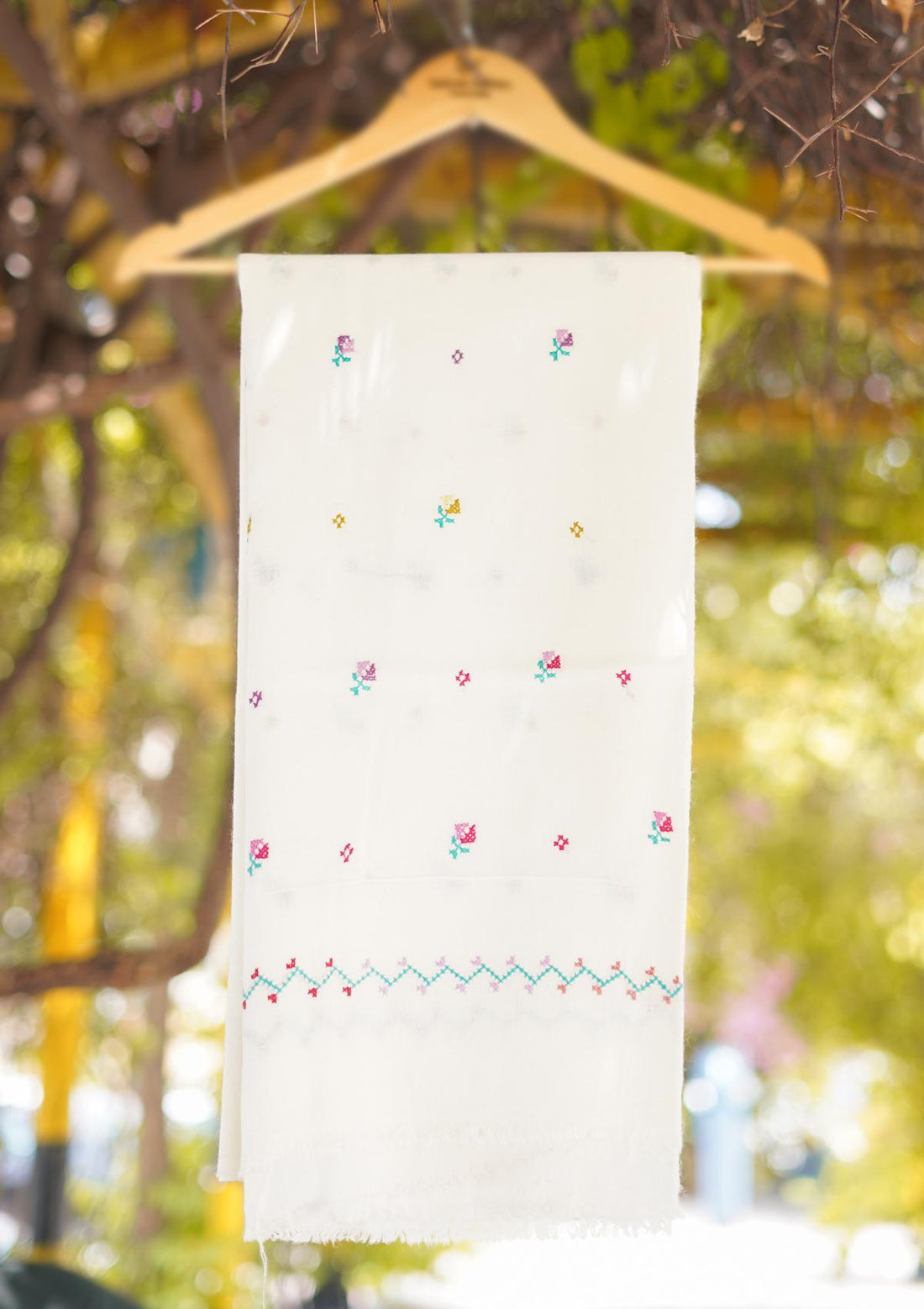 Wool Needle Work Shawl D - 55 - OFWHITE 2