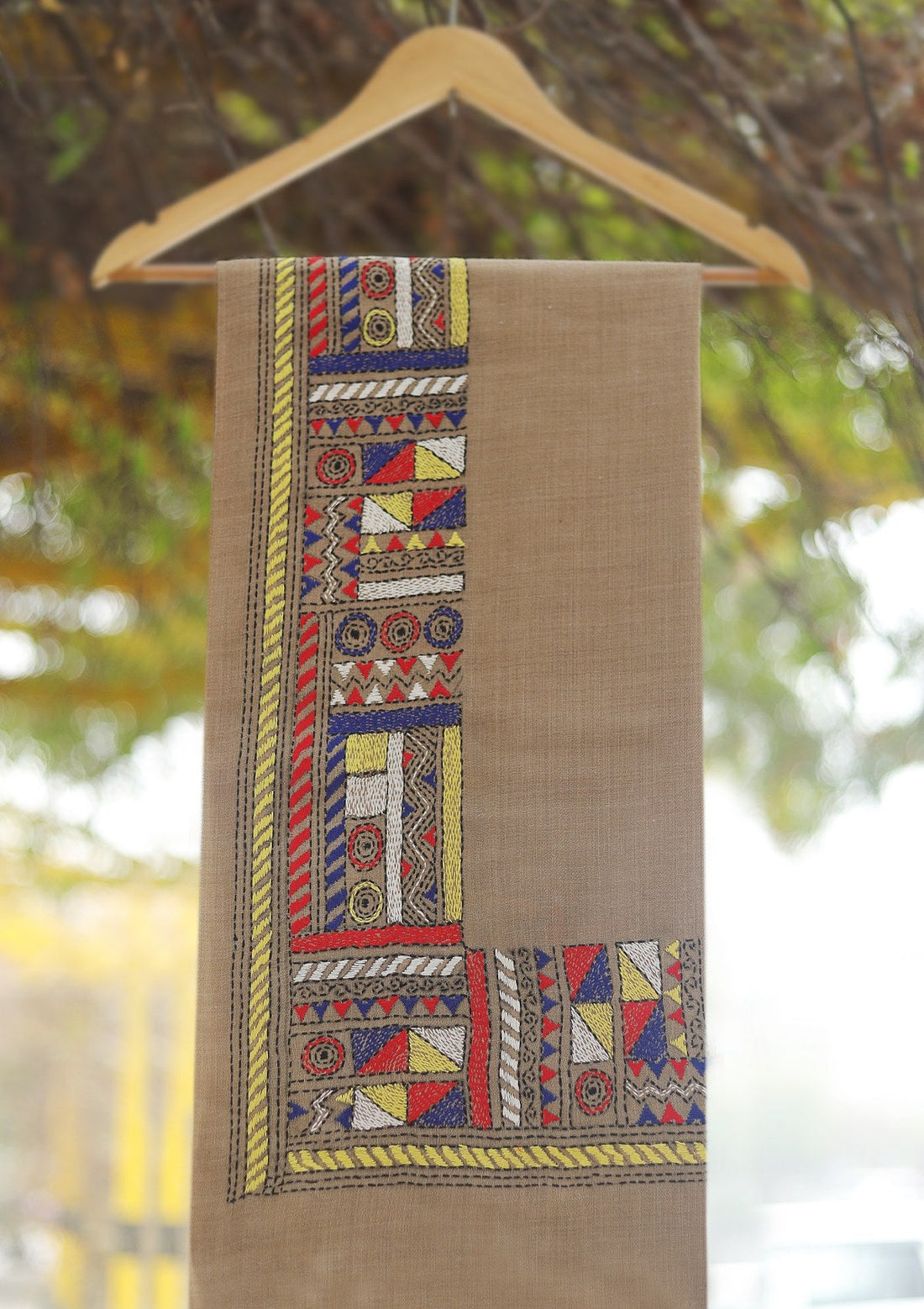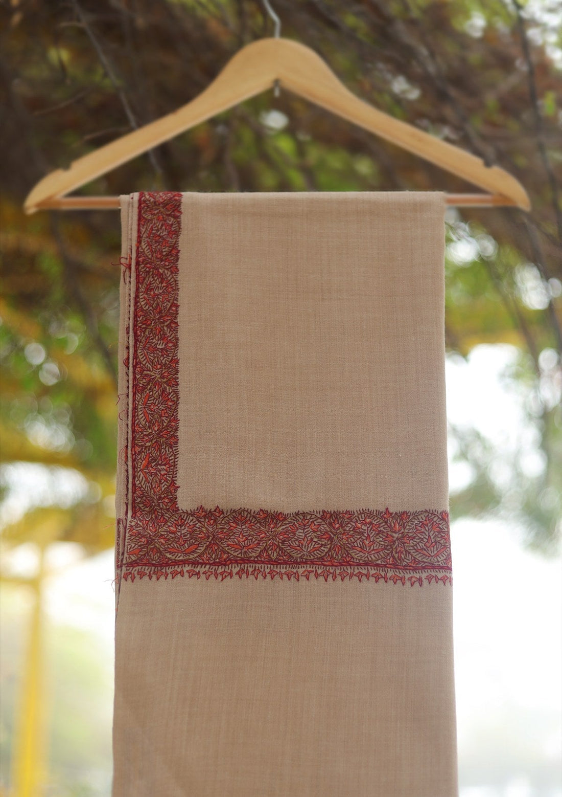 Wool Needle Work Shawl D - 62 - L Beige