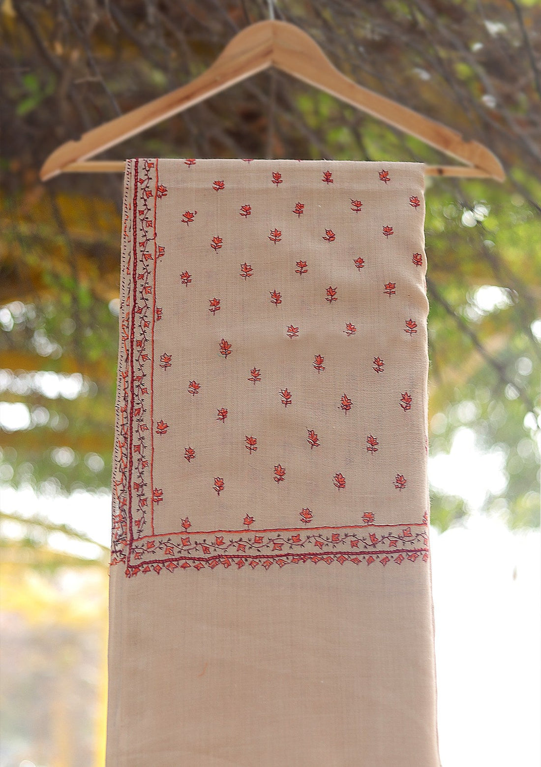 Wool Needle Work Shawl D - 67 - D Red