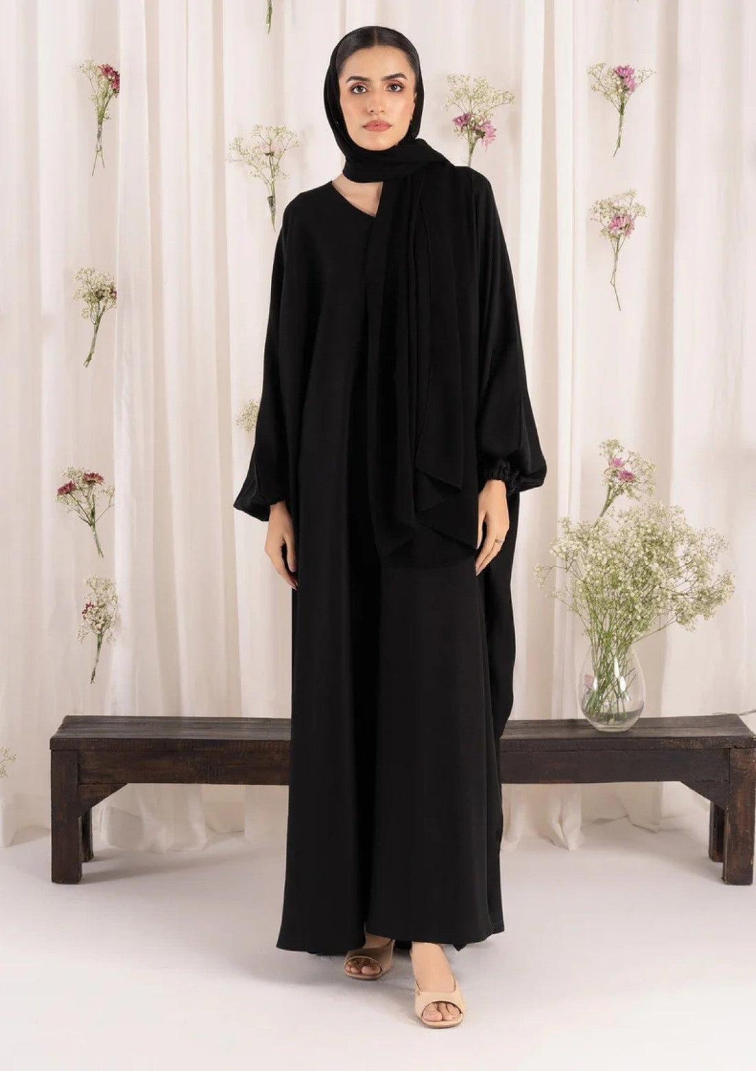 Outfit Type: Eastern Style: Abaya Color Type: Black Package Includes: 2 Piece Top & Dupatta...