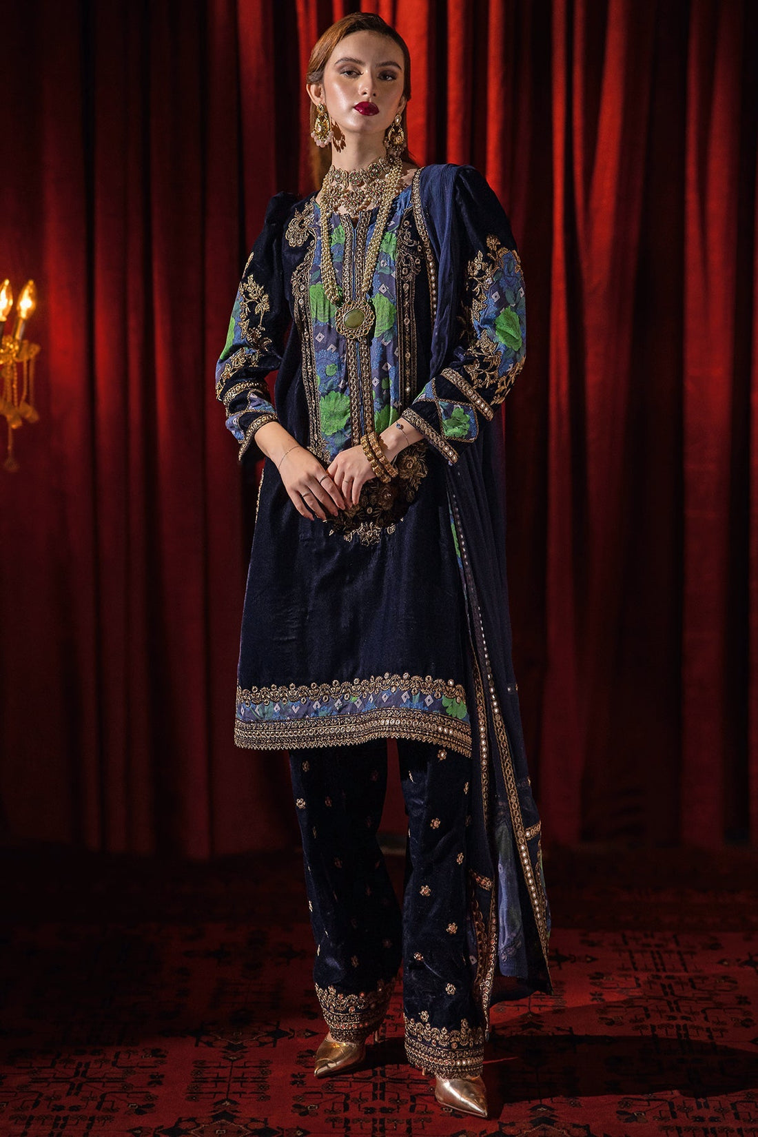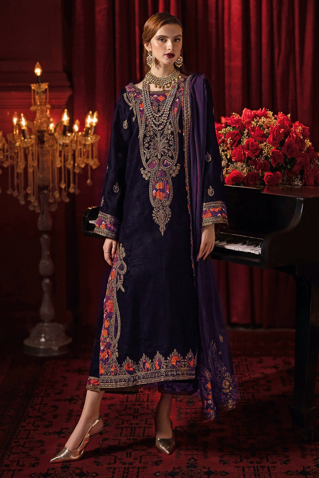 Dyed velvet front+back 2.5 MTR Emb dyed velvet sleeve 26 Inches Emb front neck 1...