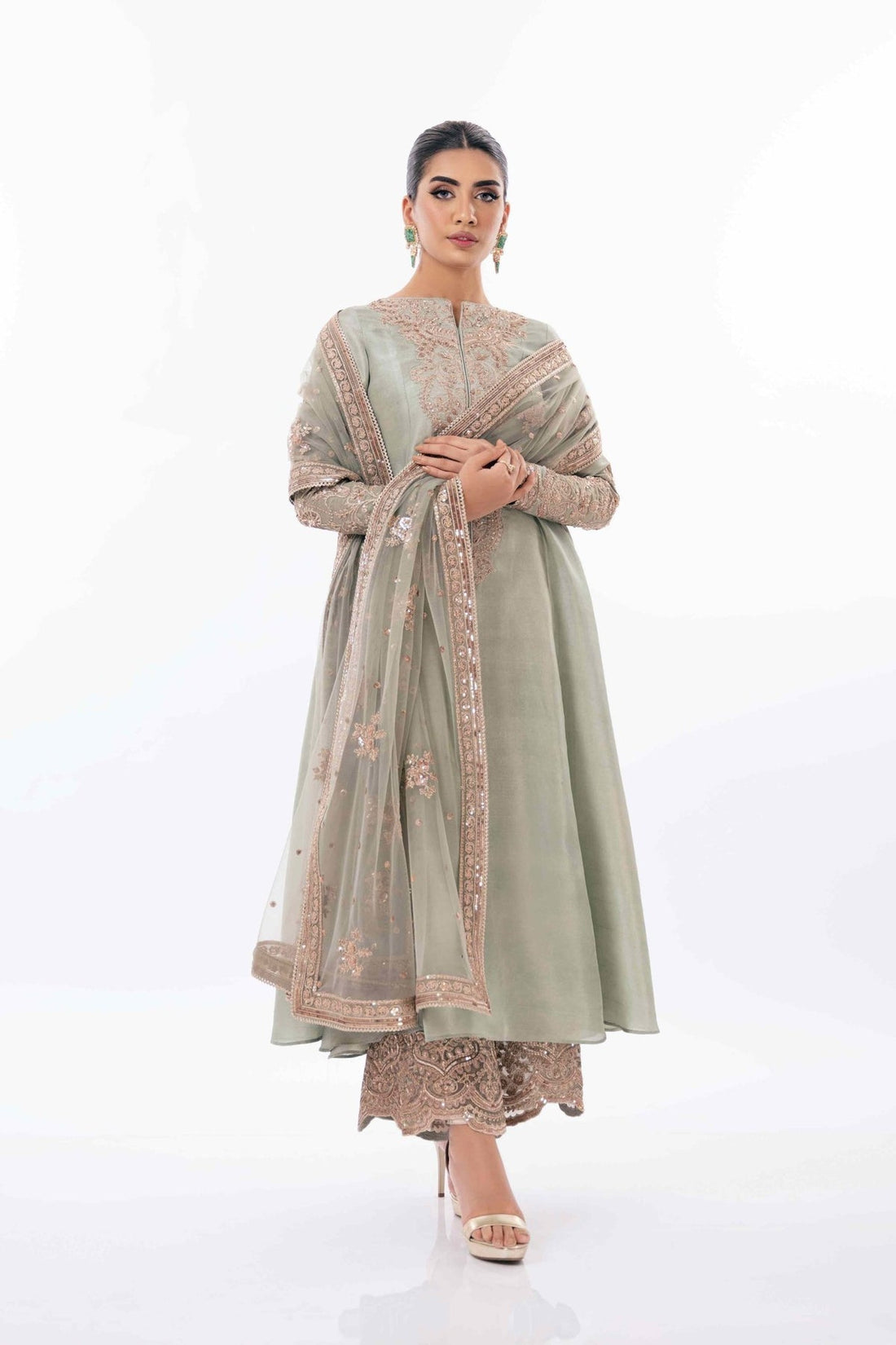 Shirt: Embroidered Shirt on lawn ( Wider 2.25 M)Embroidered Front & sleeves border on organzaEmbroidered...