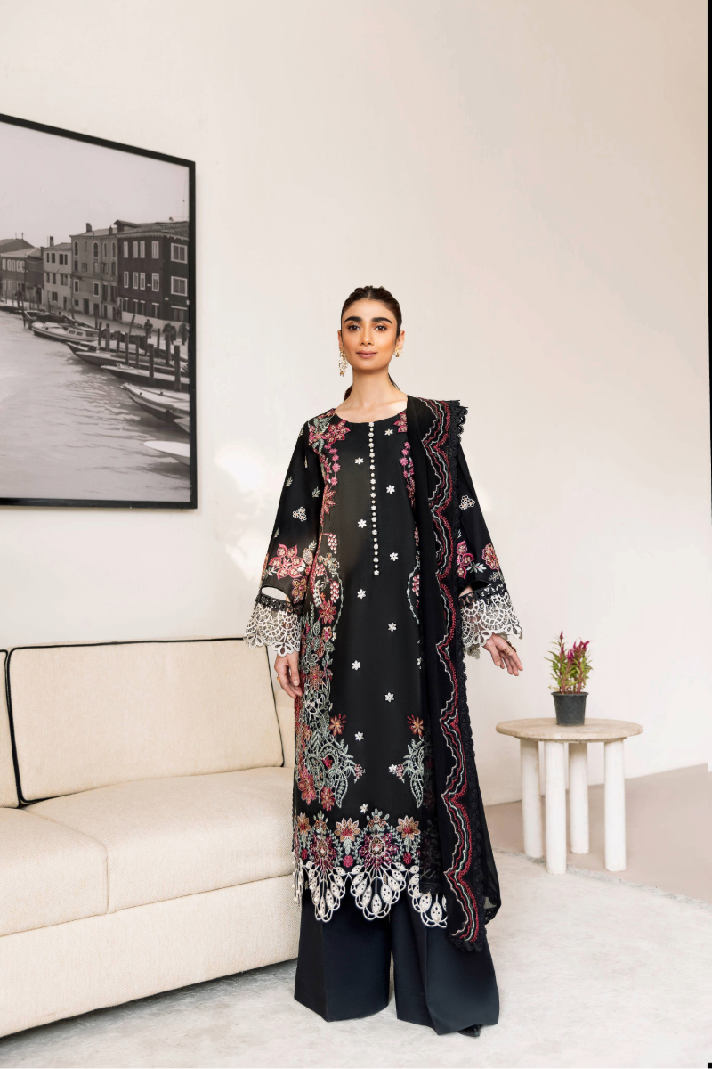 Rich in detail, Kantha is an aesthetically woven 3-piece unstitched black outfit, based on quality...