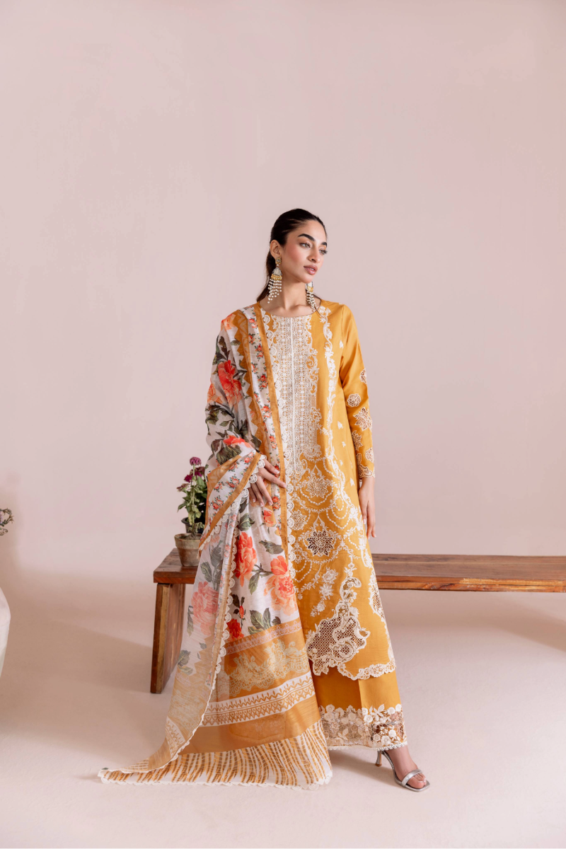 EMBROIDERED LAWN SHIRT FRONTEMBROIDERED LAWN SIDE PANELSEMBROIDERED LAWN BACKDYED LAWN SLEEVESCUTWORK EMBROIDERED MOTIVES FOR FRONT PANEL...