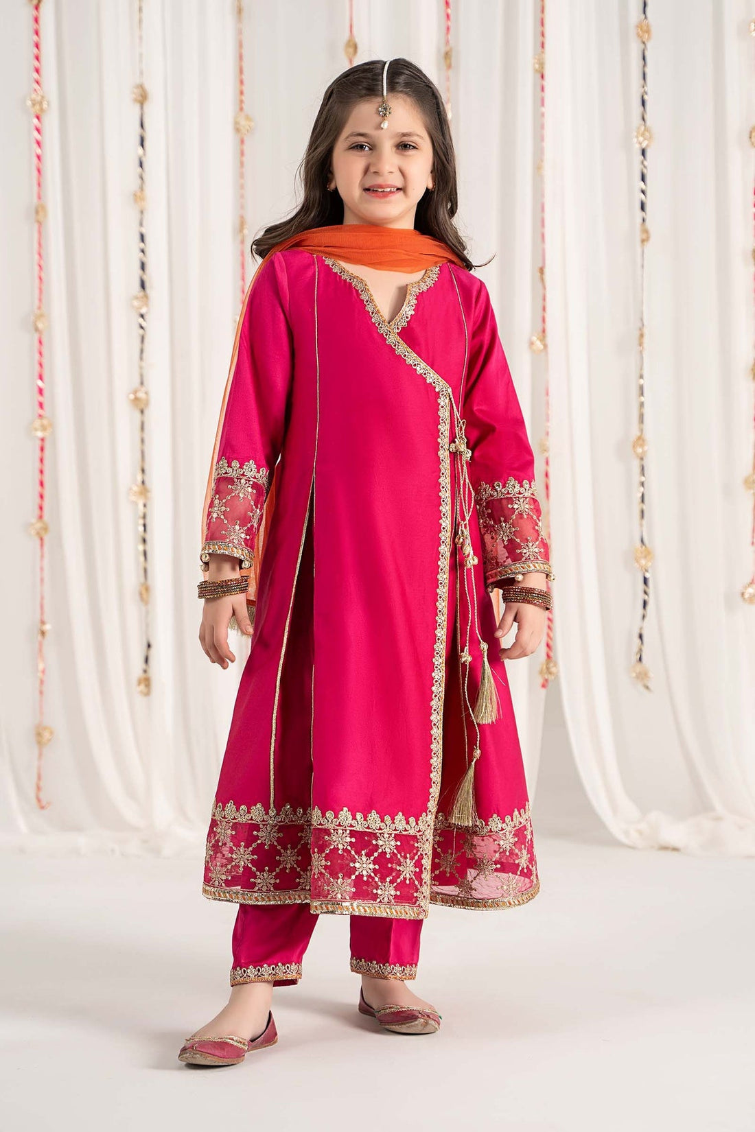 Angrakha Embroidered Neckline With Tassels DetailingDyed Front With Gotta Lace Detailing On PanelsOrganza Embroidered Front...