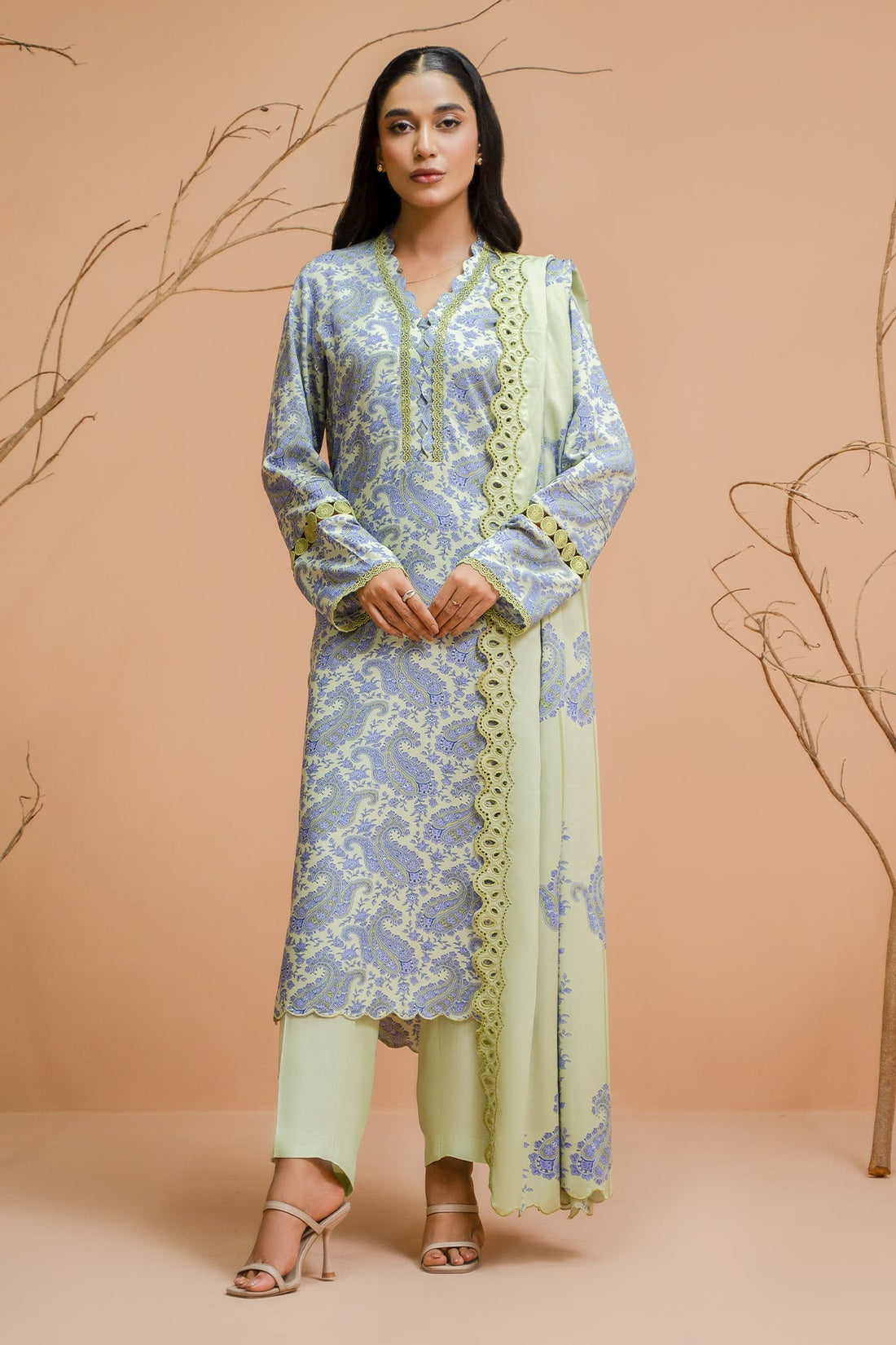 PRINTED WIDER WIDTH VISCOSE KARANDI SHIRT 2.5 MPRINTED PK CHIFFON DUPATTA 2.5 MDYED VISCOSE KARANDI...