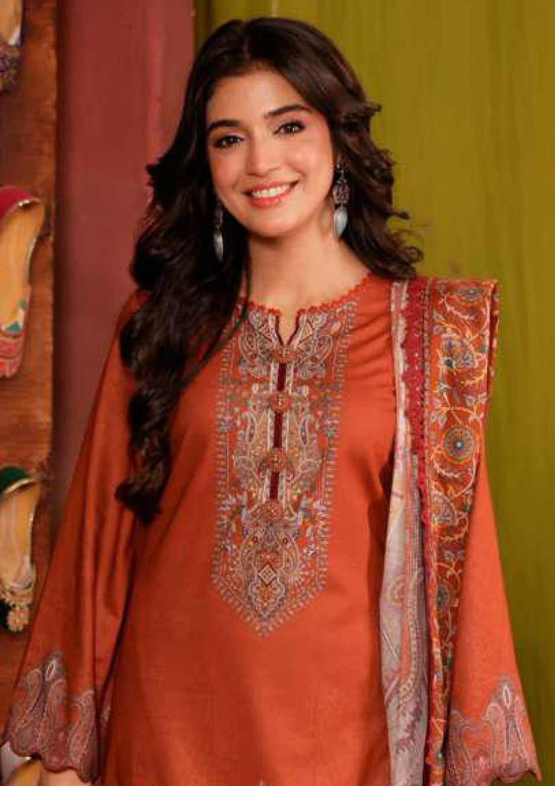 Outfit Type: Eastern Style: Long Shirt Color Type: Orange Package Includes: 3 Piece Top ,...