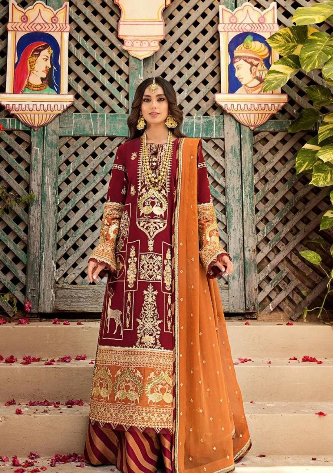Outfit Type: Eastern Style: Gharara Package Includes: 3 Piece Top, Bottom & Dupatta Fabric: Shirt:...