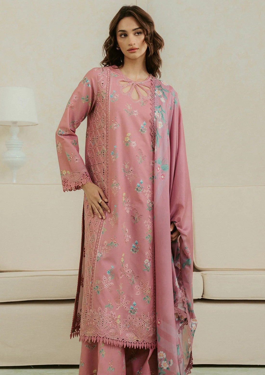 Outfit Type: Eastern Style: Long Shirt Color Type: Tea Pink Package Includes: 3 Piece Top...