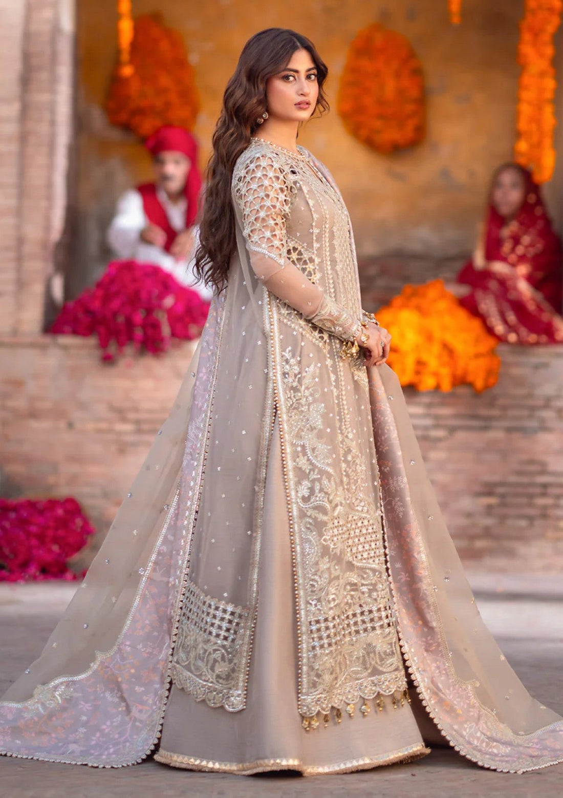 Outfit Type: Eastern Style: Gharara Color Type: Coffee Package Includes: 3 Piece Top , Bottom...