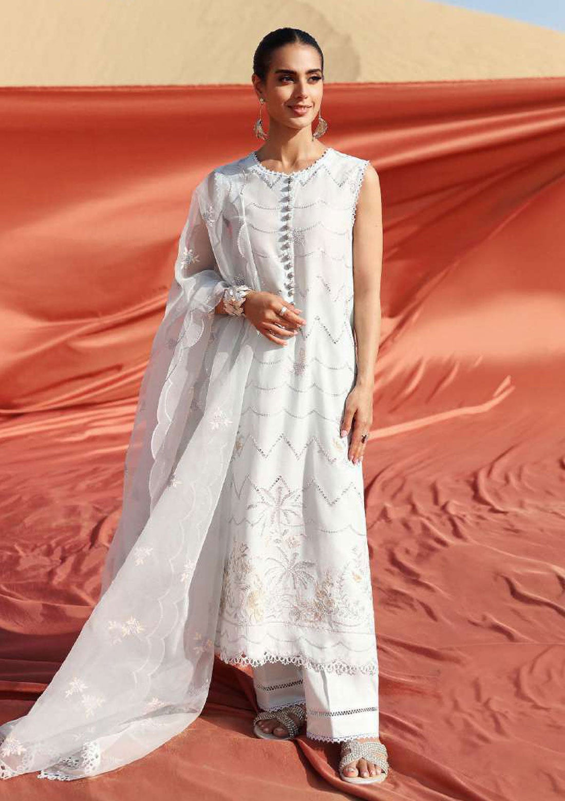 Outfit Type: Eastern Style: Long Shirt Color Type: Ivory Package Includes: 3 Piece Top ,...