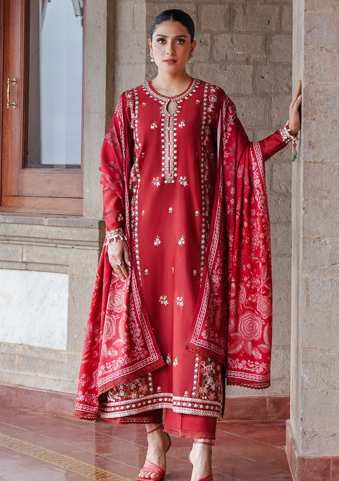 Outfit Type: Eastern Style: Long Shirt Color Type: Red Package Includes: 3 Piece Top ,...