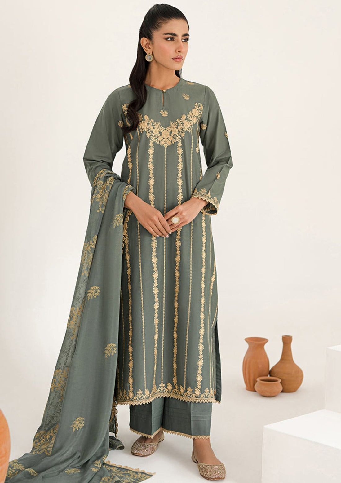 Outfit Type: Eastern Style: Kurta Set Package Includes: 3 PcsTop, Bottom & Dupatta Fabric: Shirt:...