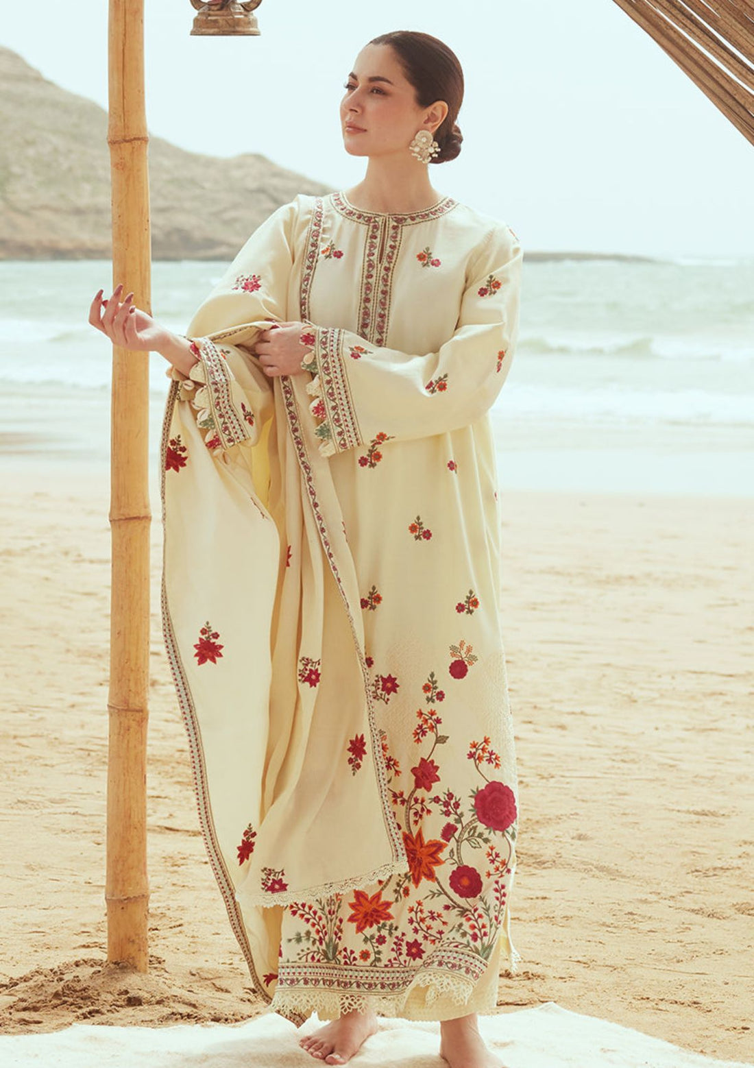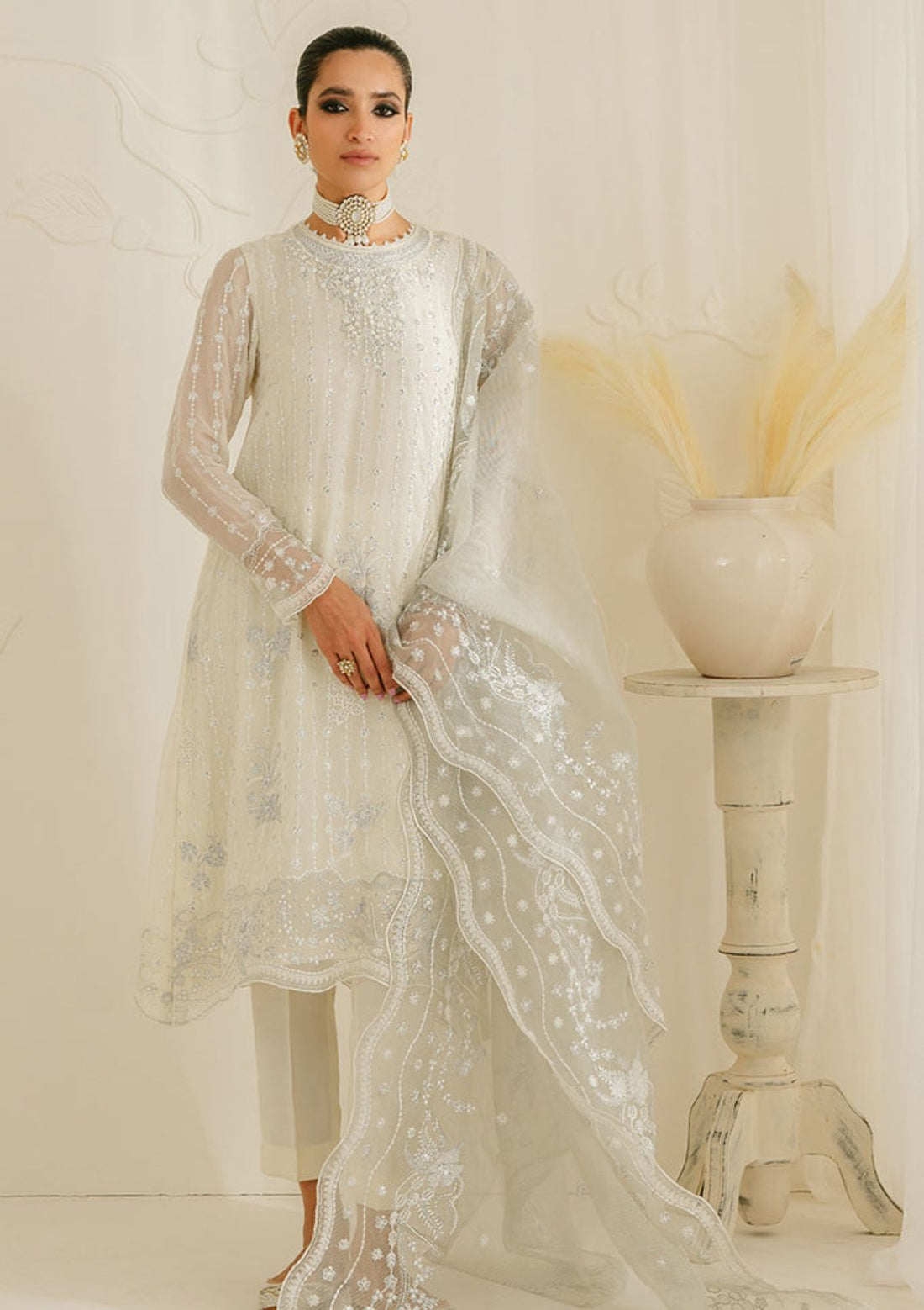 Outfit Type: Eastern Style: Long Shirt Color Type: IVORY Package Includes: 3 Piece Top ,...