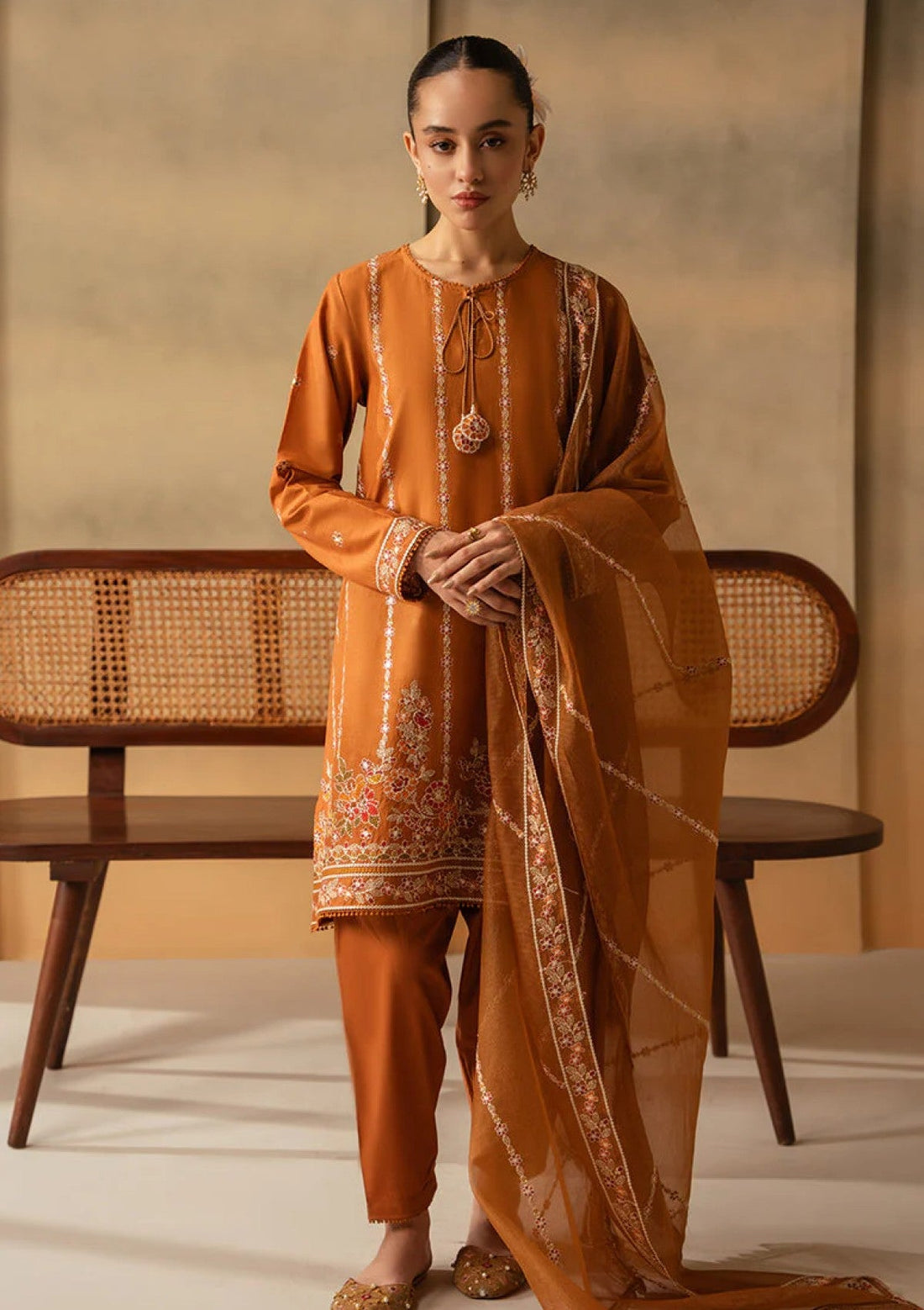 Outfit Type: Eastern Style: Kurta Set Color Type: Brown Package Includes: 3 Piece Top ,...