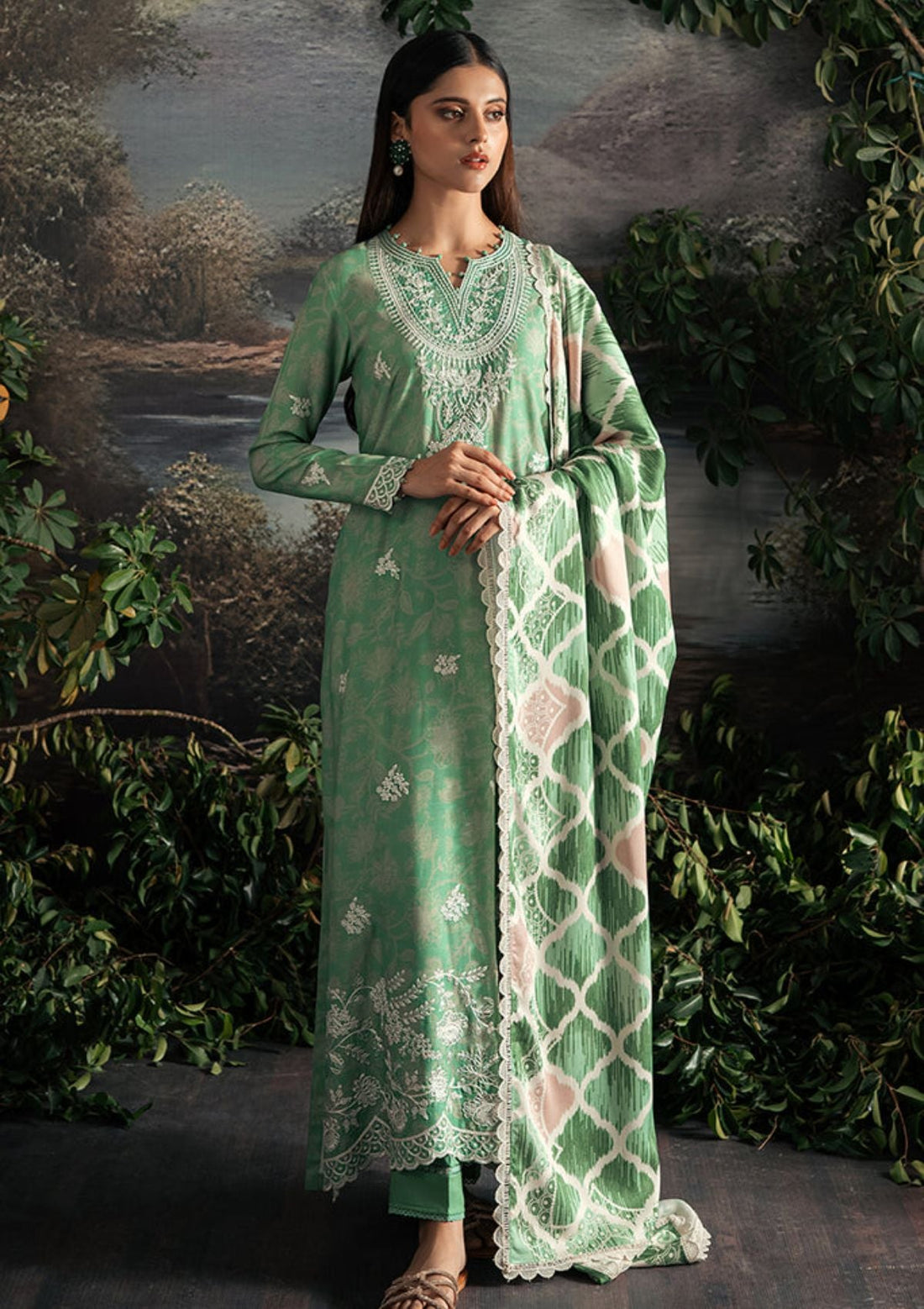 Lawn - Cross Stitch - Unstitched Premium 25 - SAGE GLEAM