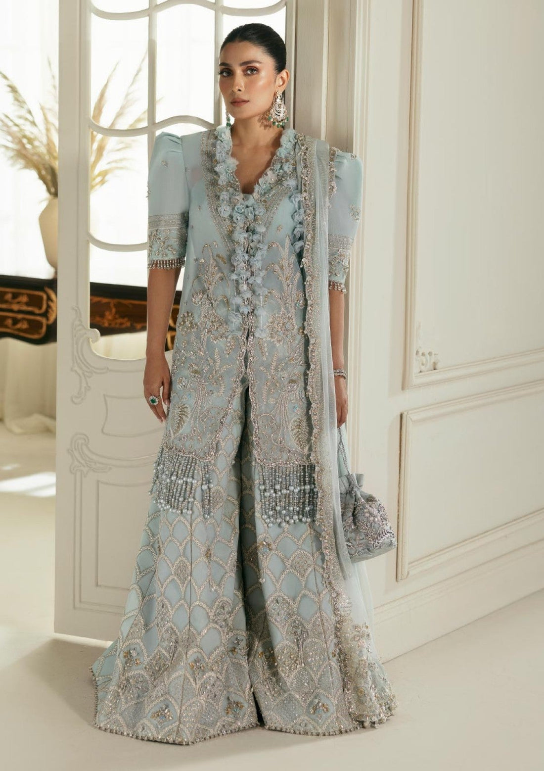 Outfit Type: Eastern Style: Sharara Color Type: Soft Blue Package Includes: 3 Piece Top ,...