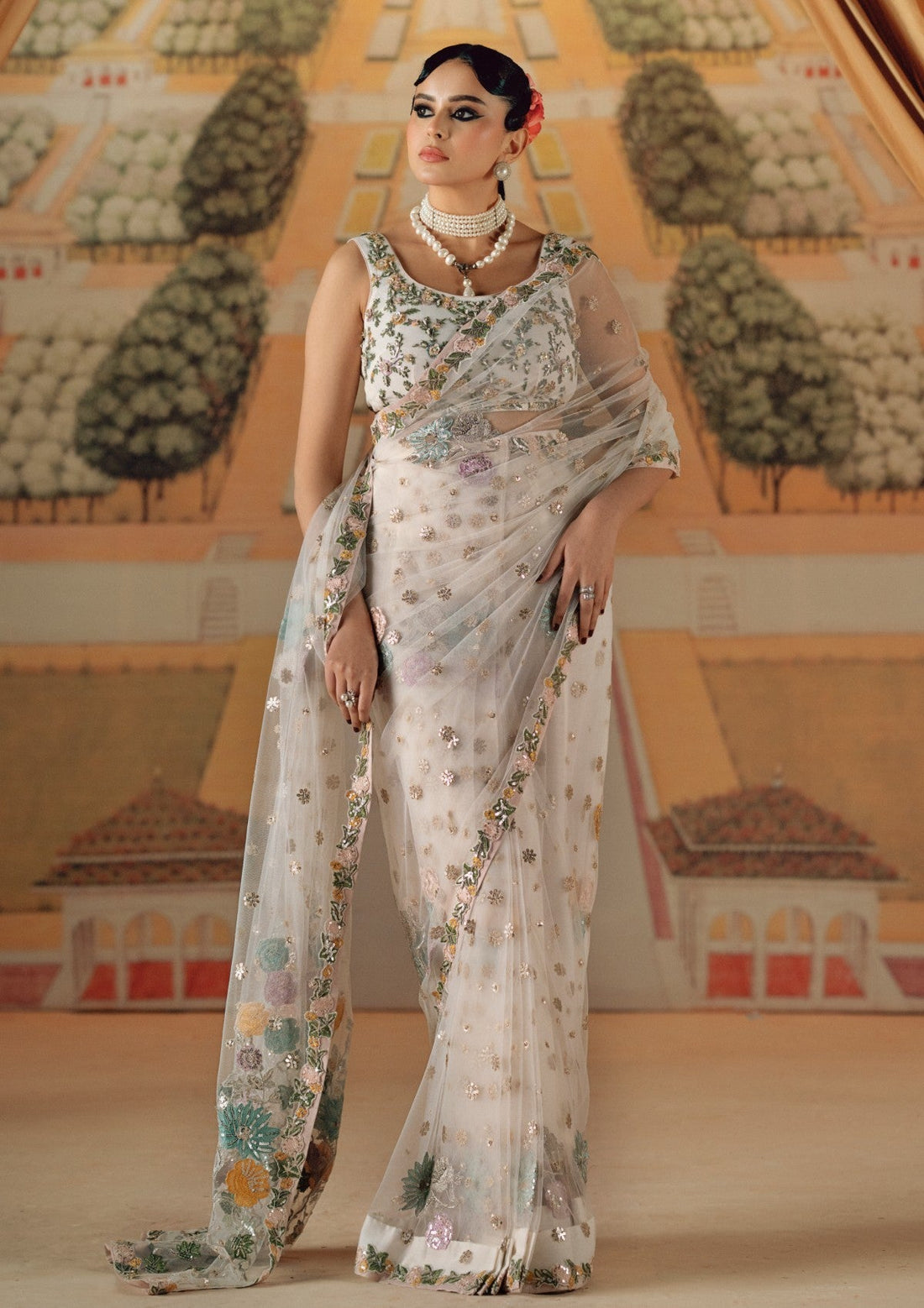 Outfit Type: Eastern Style: Saree Color Type: Off-White Package Includes: 3 piece embellished saree with...