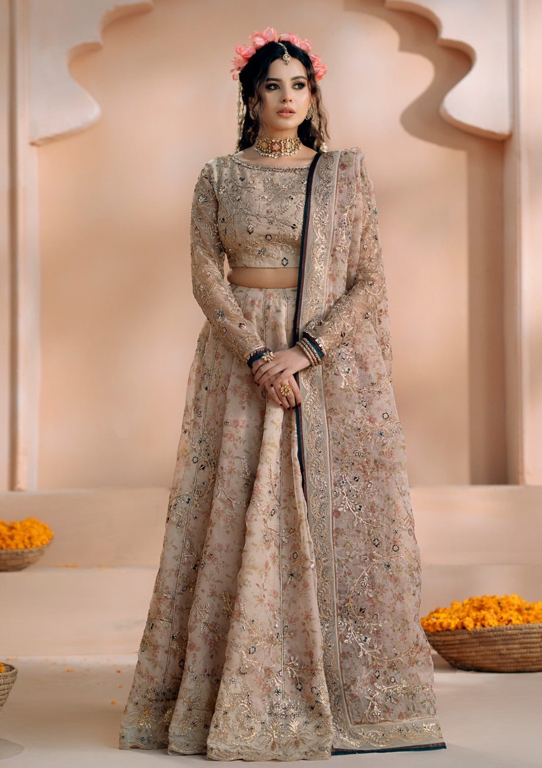 Outfit Type: Eastern Style: Lehenga Color Type: Beige Package Includes: 3-piece heavy embellished lehenga, choli...