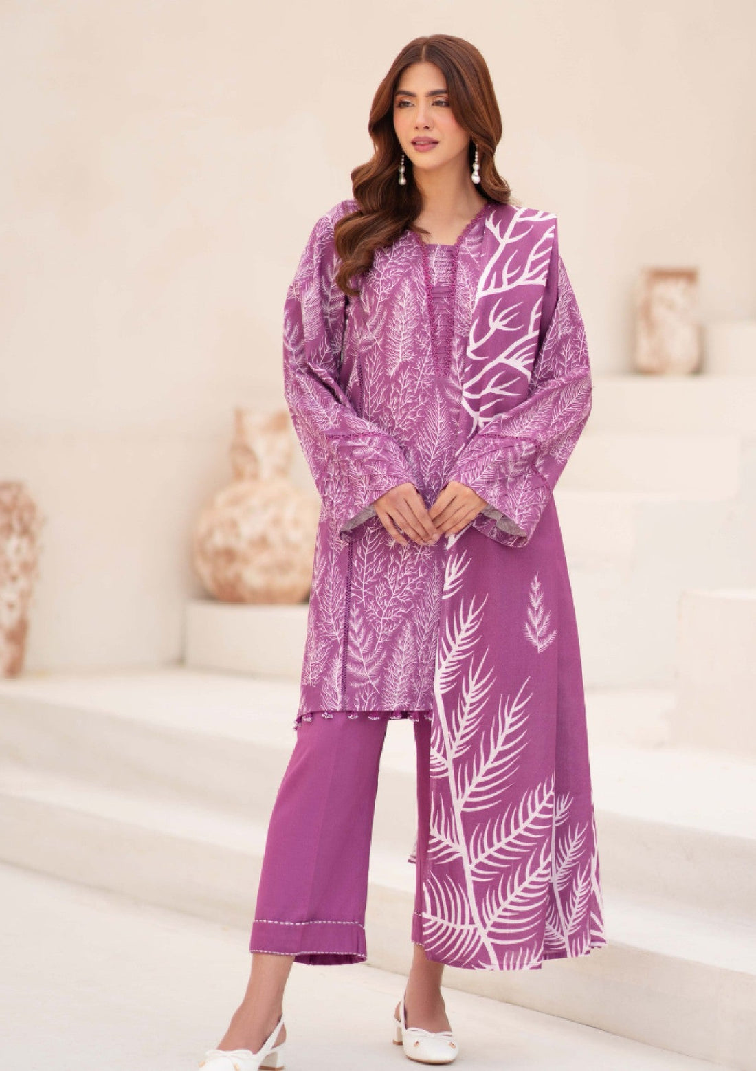 Outfit Type: Eastern Style: Kurta Set Color Type: Mulberry Package Includes: 3 Piece Top ,...