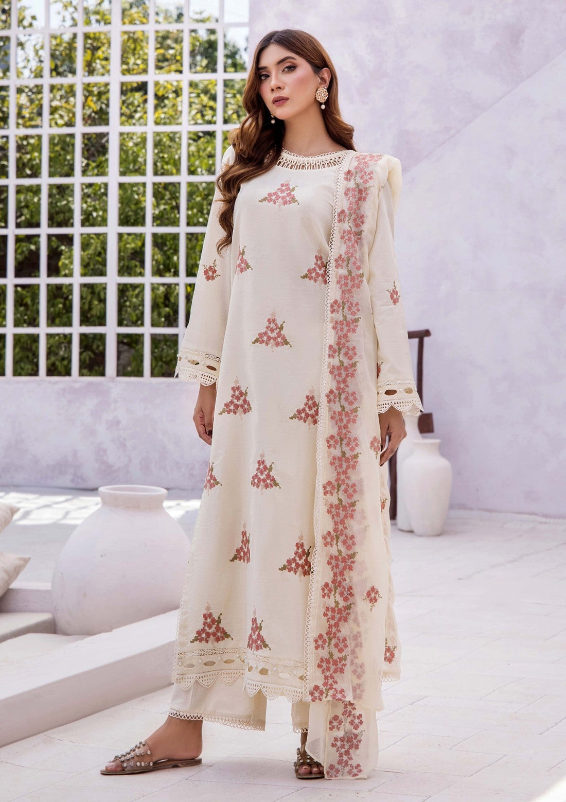 Outfit Type: Eastern Style: Long Shirt Color Type: Cream Package Includes: 3 Piece Top ,...