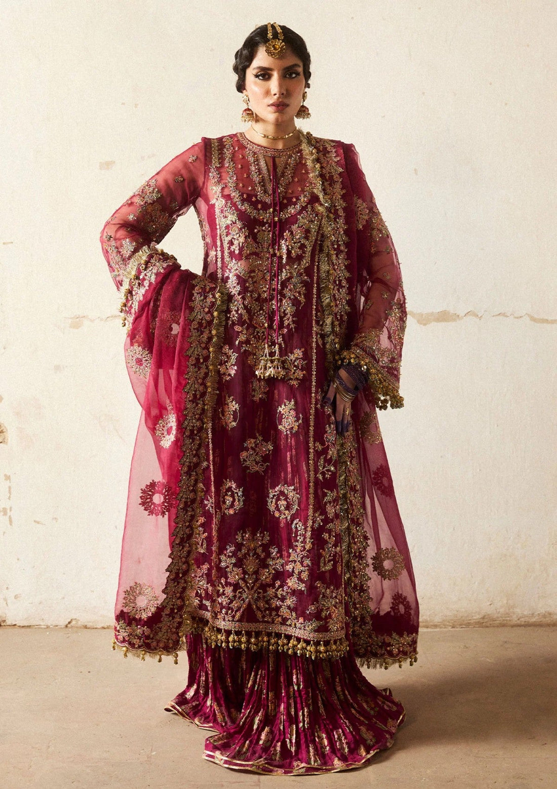 Outfit Type: Eastern Style: Sharara Color Type: Plum Package Includes: 3 Piece Top , Bottom...