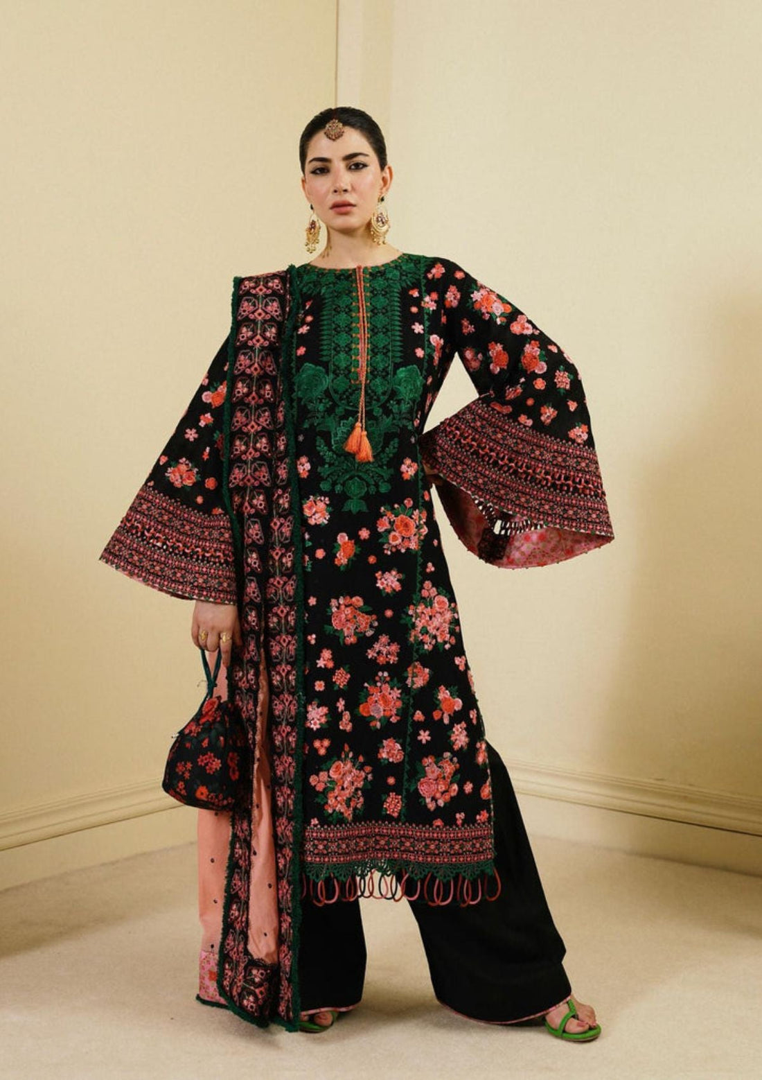 Outfit Type: Eastern Style: Long Shirt Color Type: Black Package Includes: 3 Piece Top ,...