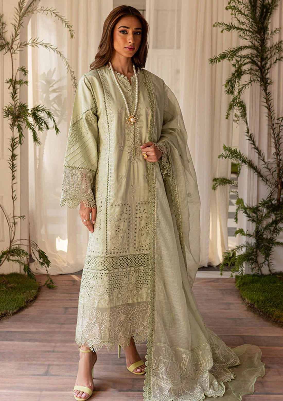 Outfit Type: Eastern Style: Long Shirt Color Type: P Green Package Includes: 3 Piece Top...