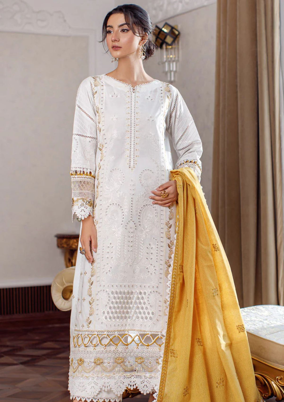 Outfit Type: Eastern Style: Long Shirt Color Type: White Package Includes: 3 Piece Top ,...