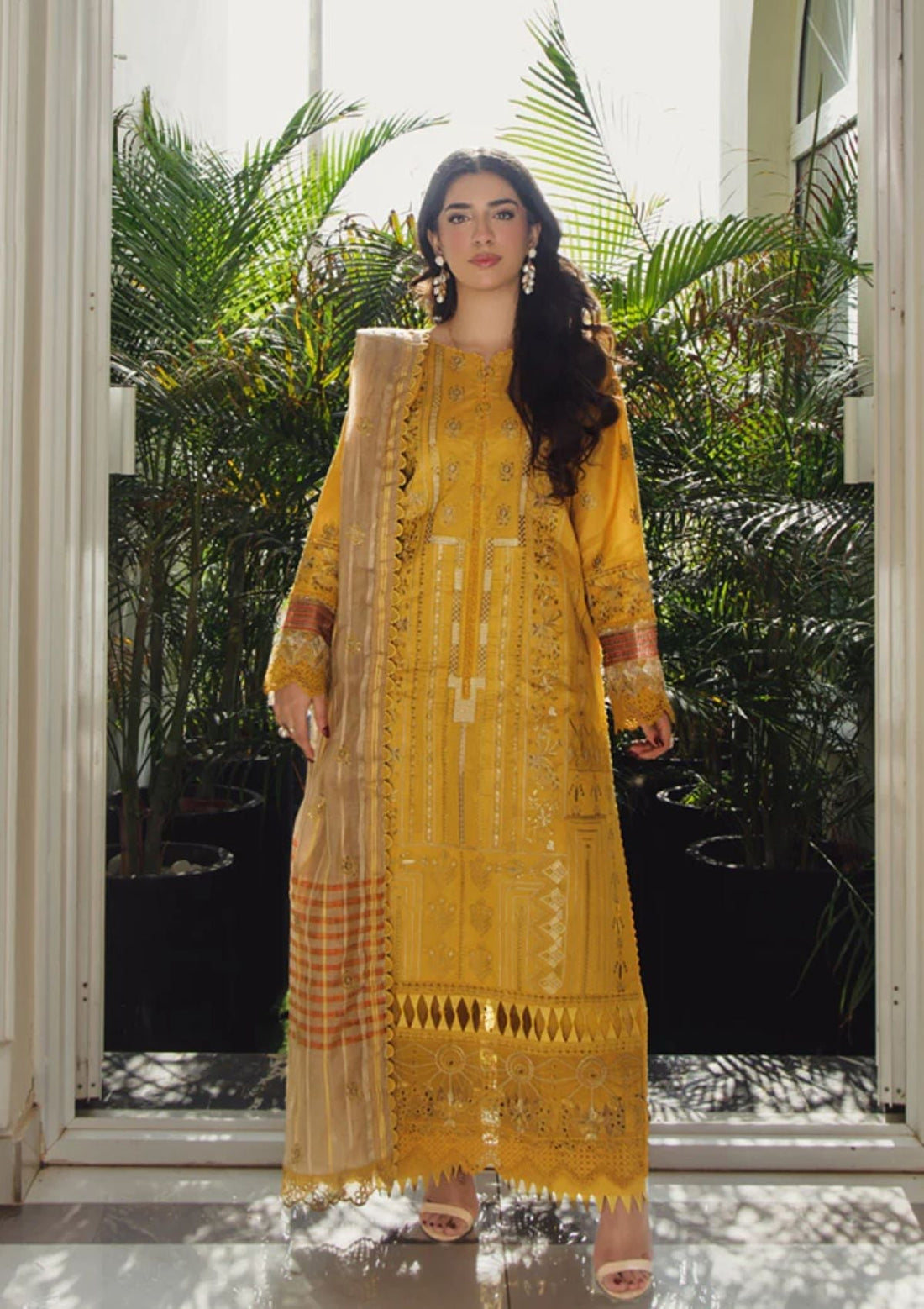 Outfit Type: Eastern Style: Long Shirt Color Type: Yellow Package Includes: 3 Piece Top ,...