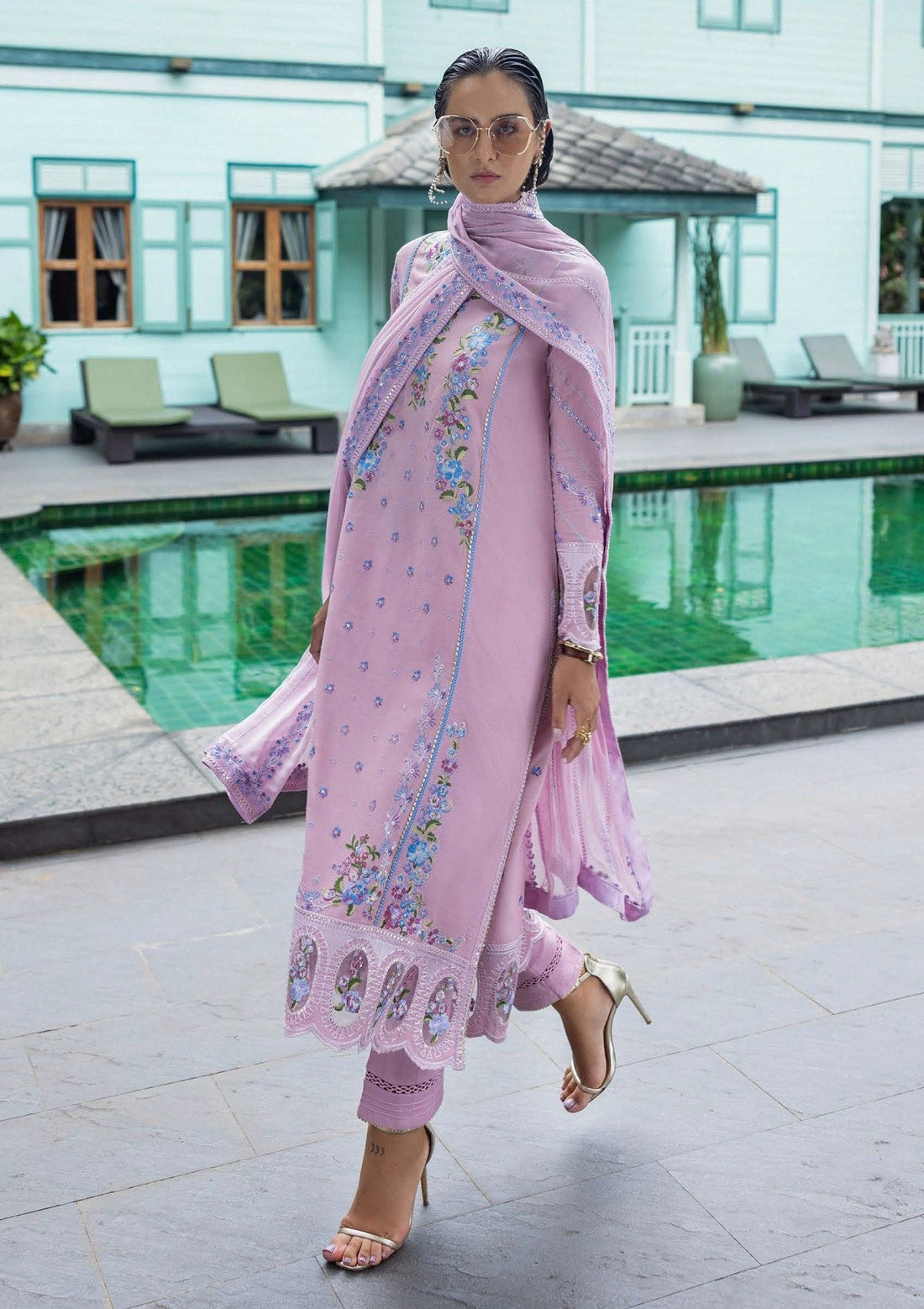 Outfit Type: Eastern Style: Long Shirt Color Type: Lilac Pink Package Includes: 3 Piece Top...
