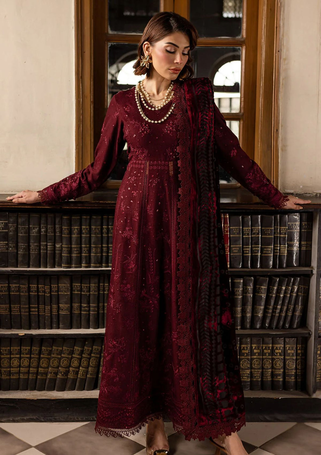 Outfit Type: Eastern Style: Long Shirt Color Type: Maroon Package Includes: 3 Piece Top ,...