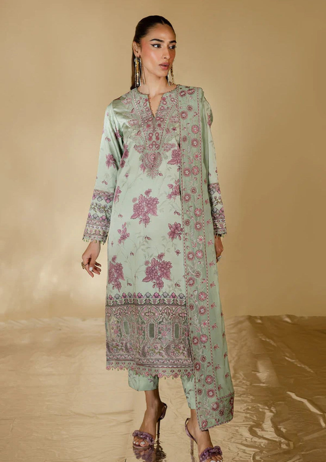 Outfit Type: Eastern Style: Long Shirt Color Type: L Green Package Includes: 3 Piece Top...