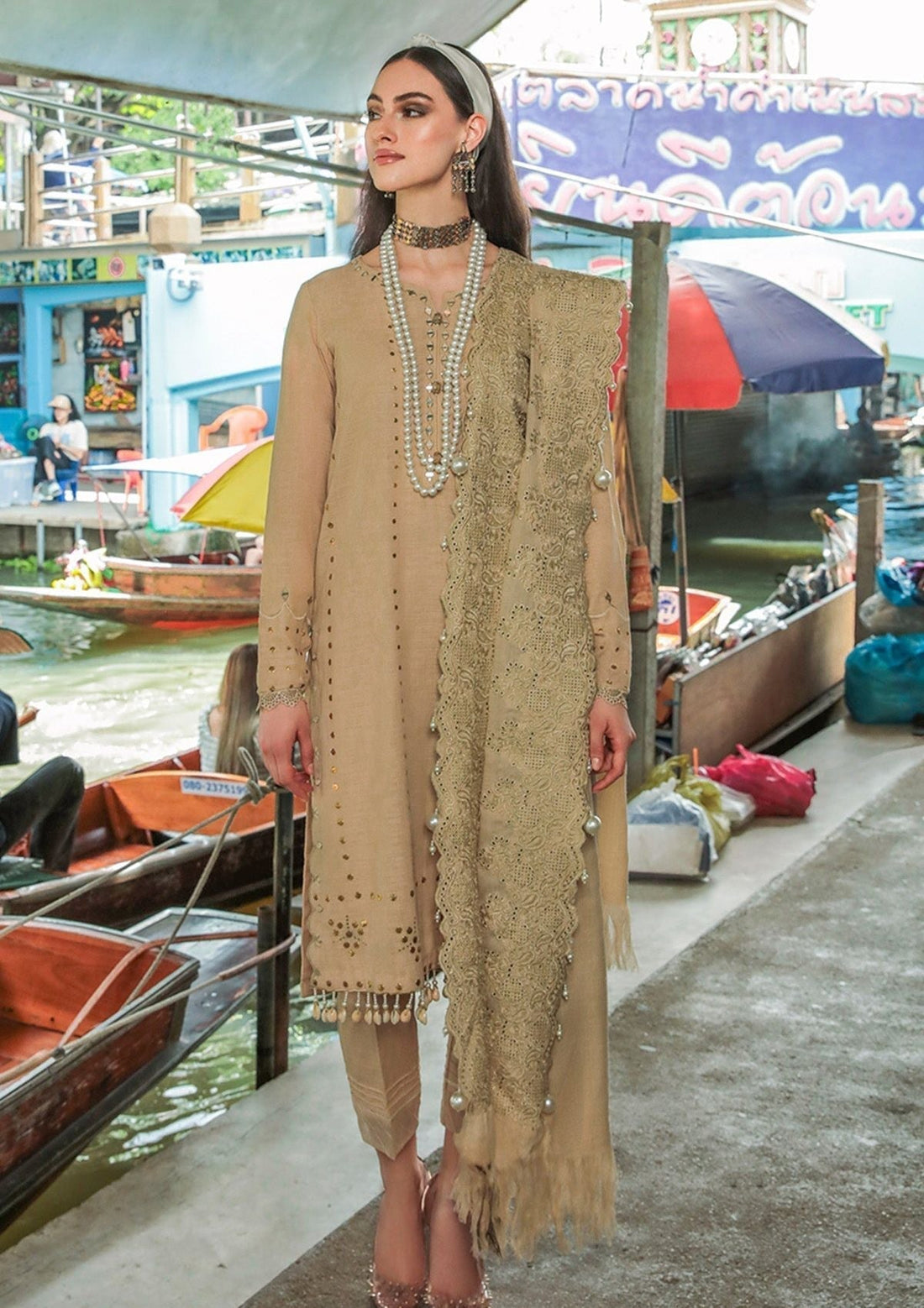 Description: EMBROIDERED & EMBELLISHED VELVET SHIRT EMBROIDERED VELVET DUPATTA RAWSILK DYED EMBROIDERED TROUSER Note:Please note...