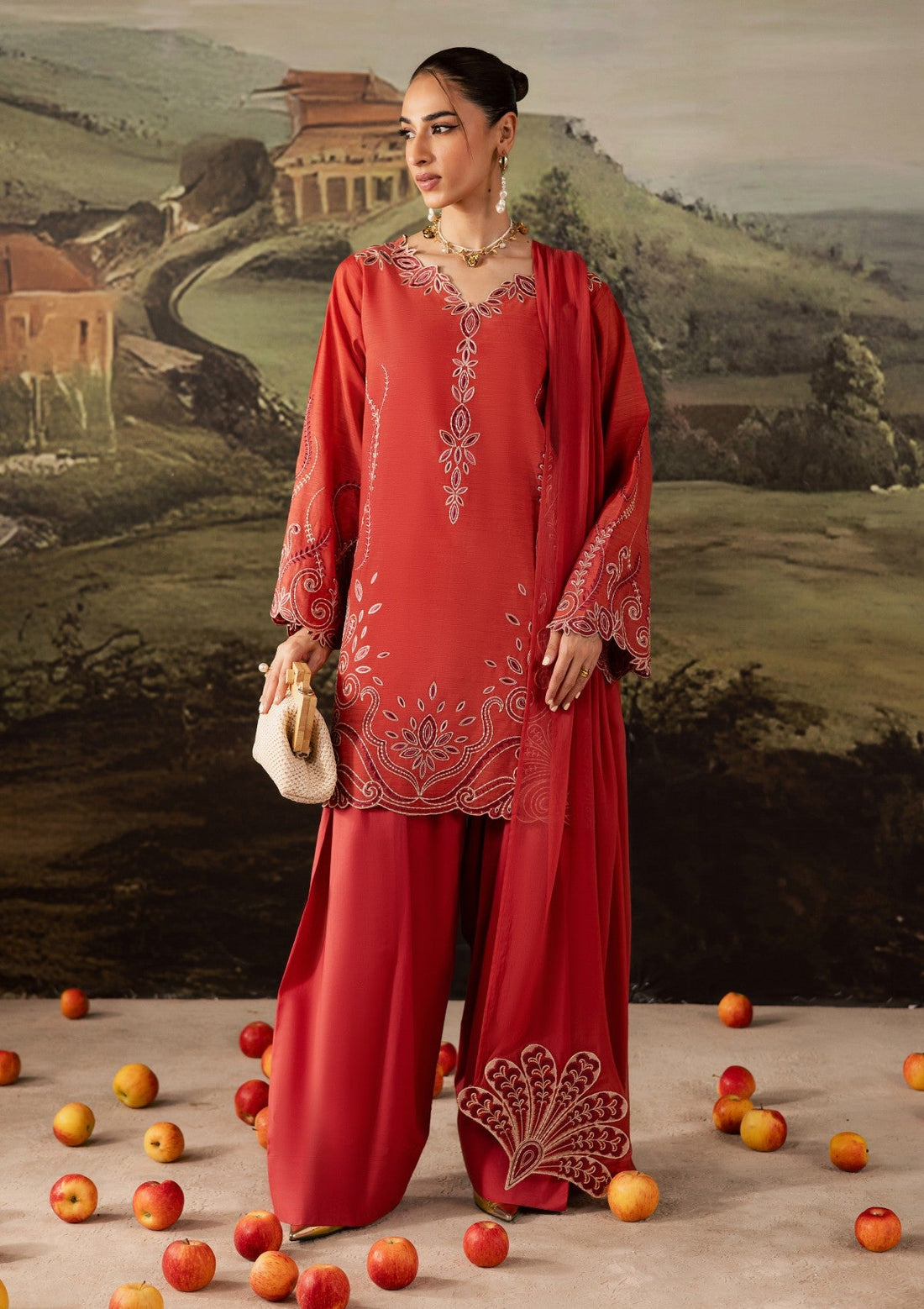 Outfit Type: Eastern Style: Kurta Set Color Type: Red Package Includes: 3 Piece Top ,...