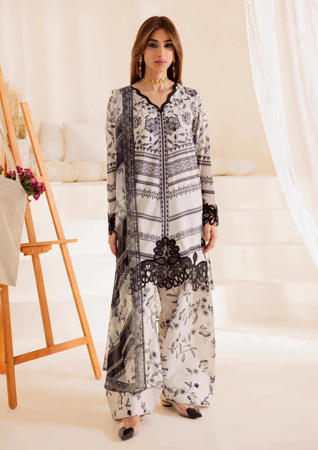 Outfit Type: Eastern Style: Kurta Set Color Type: Off White Package Includes: 3 Piece Top...