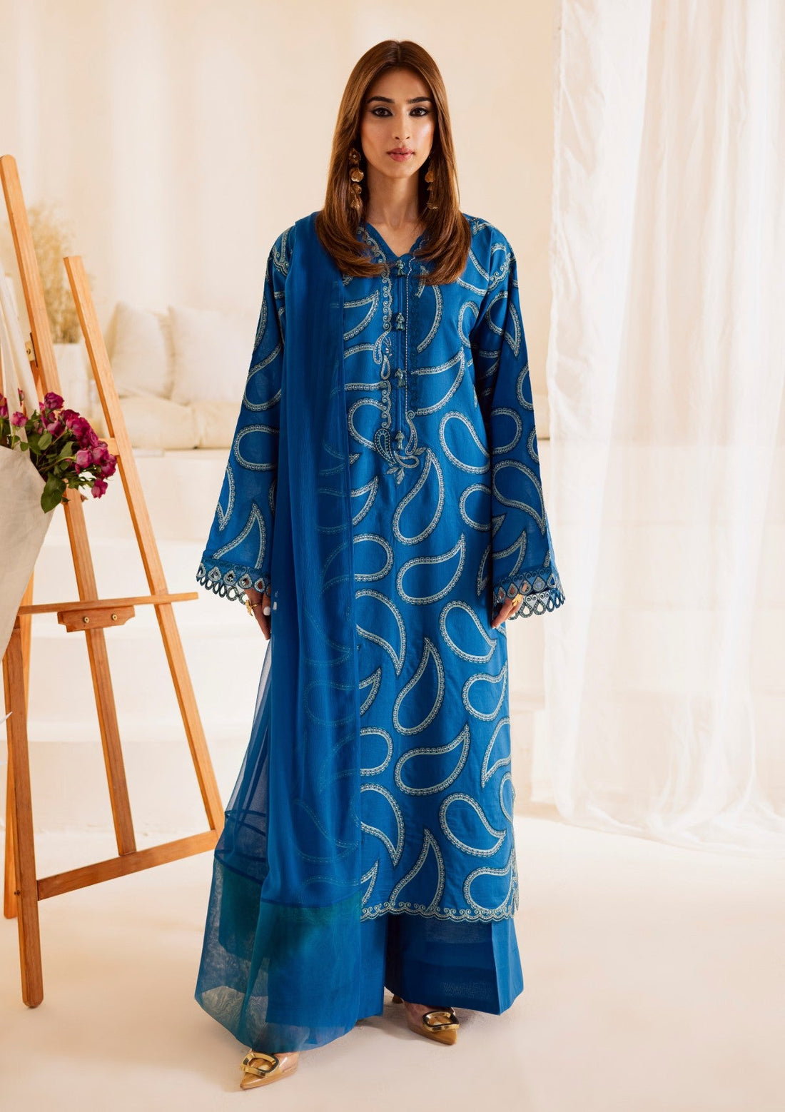 Outfit Type: Eastern Style: Long Shirt Color Type: Blue Package Includes: 3 Piece Top ,...