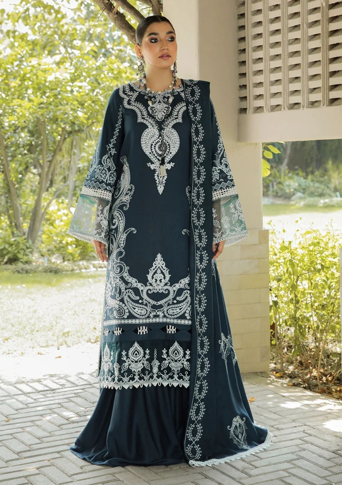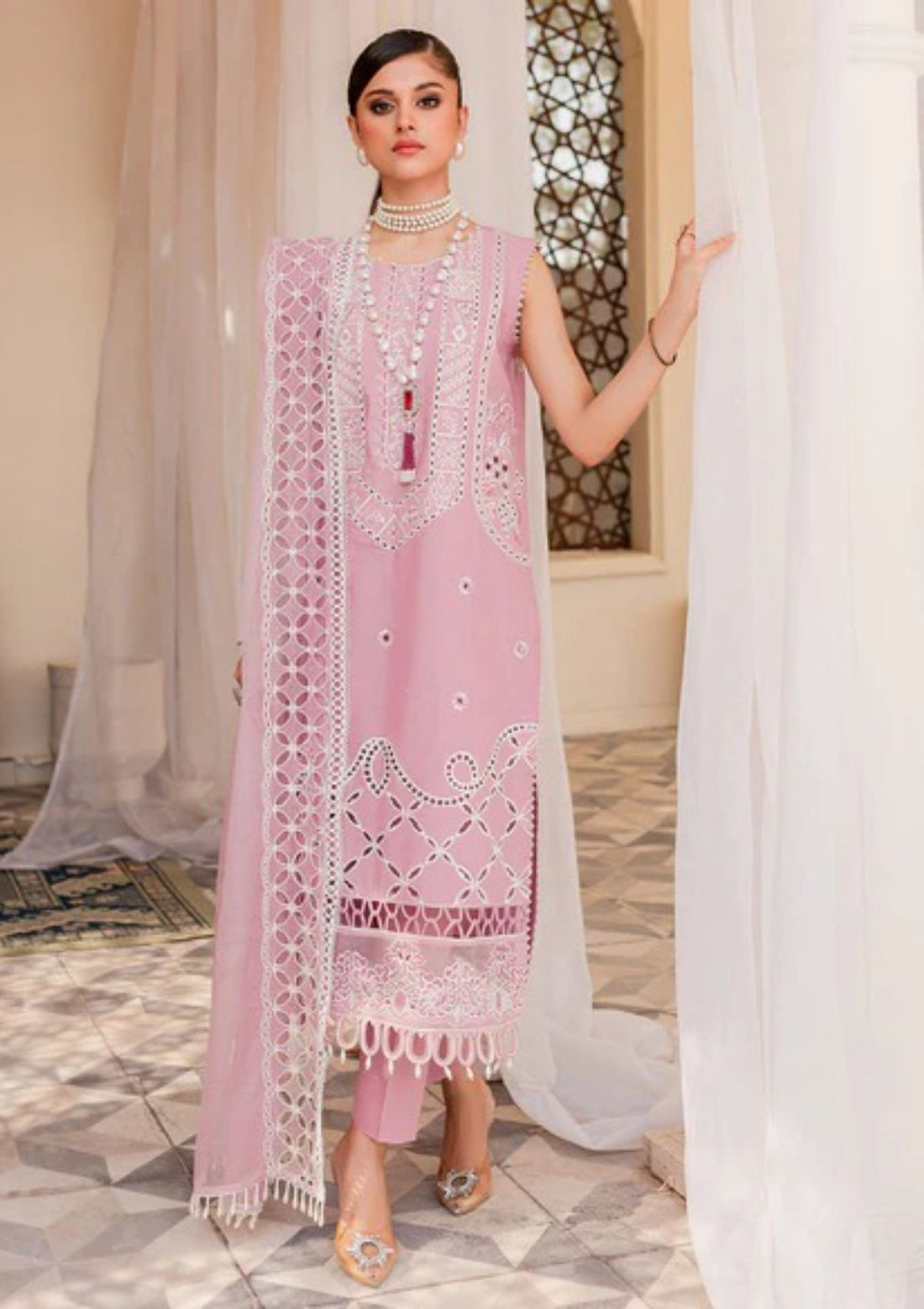 Description : Shirt Schiffli Cutwork Embroidered Front Schiffli Embroidered Back & Extensions Schiffli EmbroideredSleeves Schiffli...