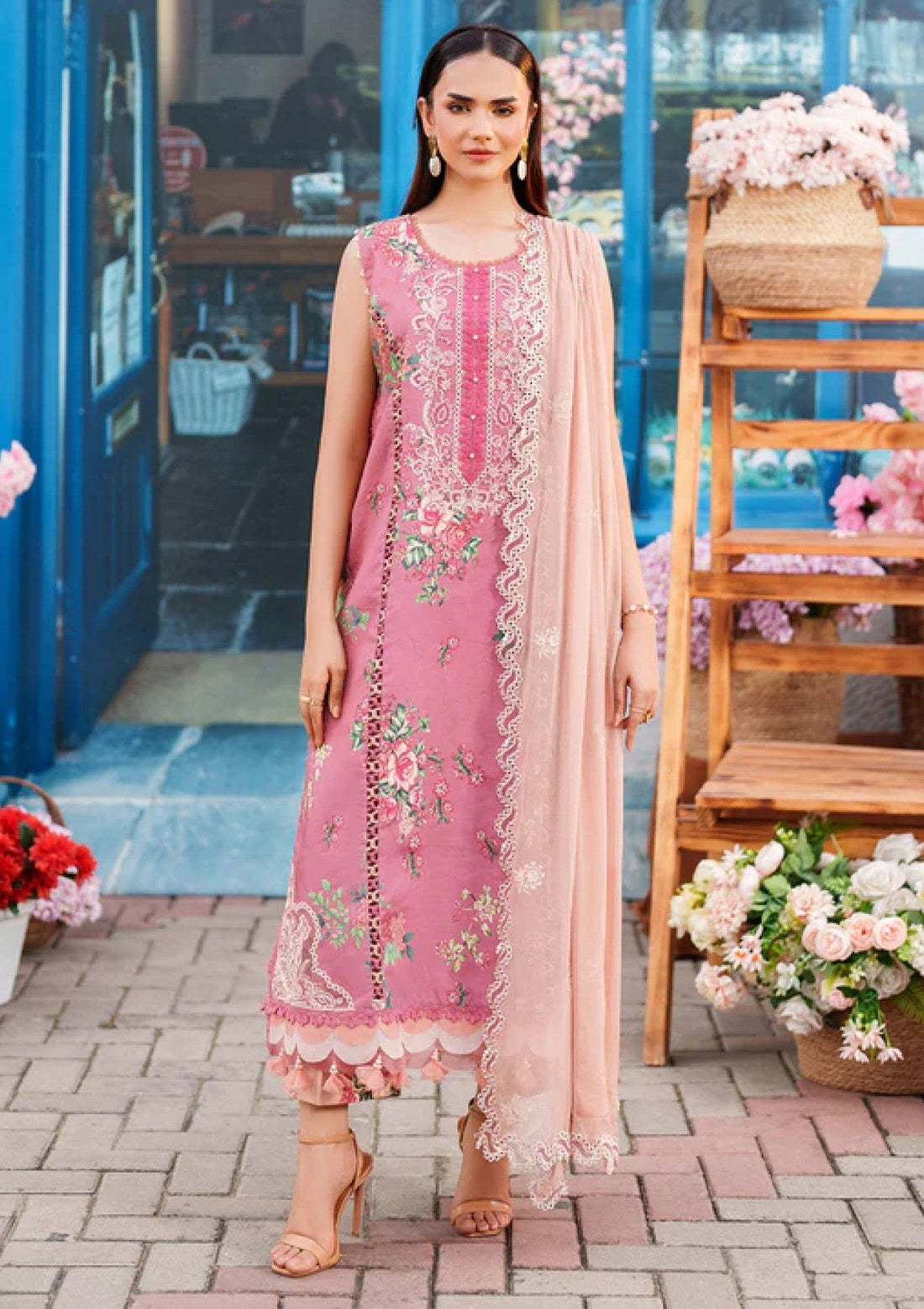 Outfit Type: Eastern Style: Long Shirt Color Type: Powder Pink Package Includes: 3 Piece Top...